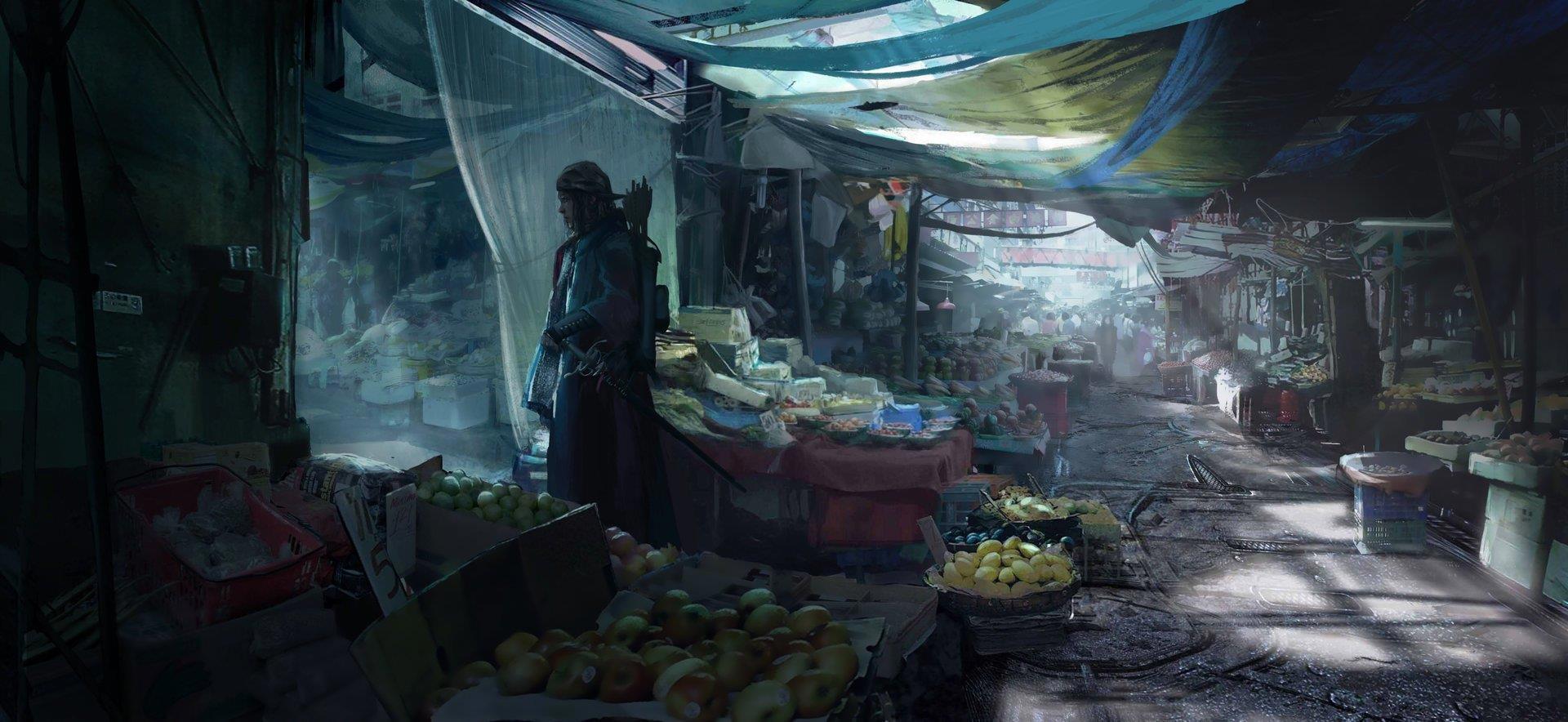На Косом базаре можно вынюхать многое, тк это один из мощных "мешочков" сплетен. К тому же, торговцы со всего мира Йертсен продают свои товары (а торговцев тут более тысячи, не считая тех, кто просто проездом).