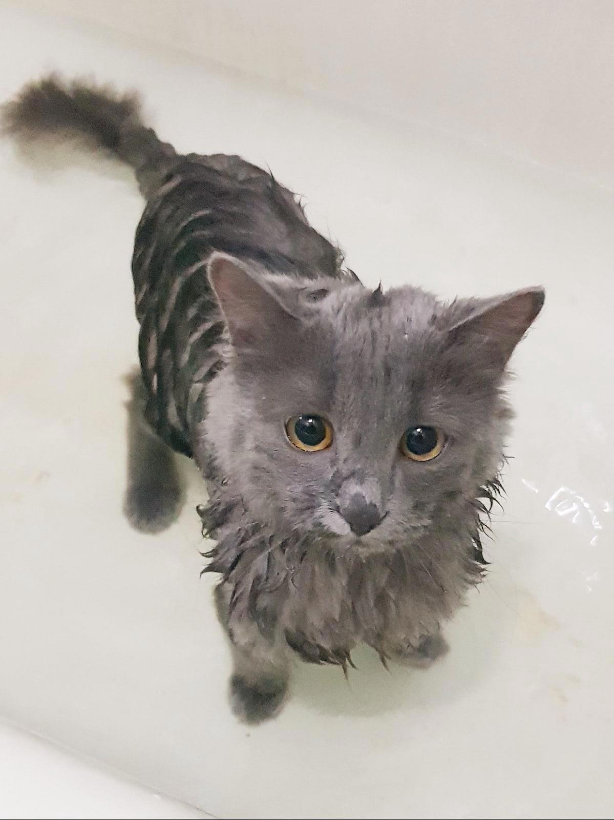 А еще Тень любит воду. Когда хочет купаться - садится в ванну и мяучит)