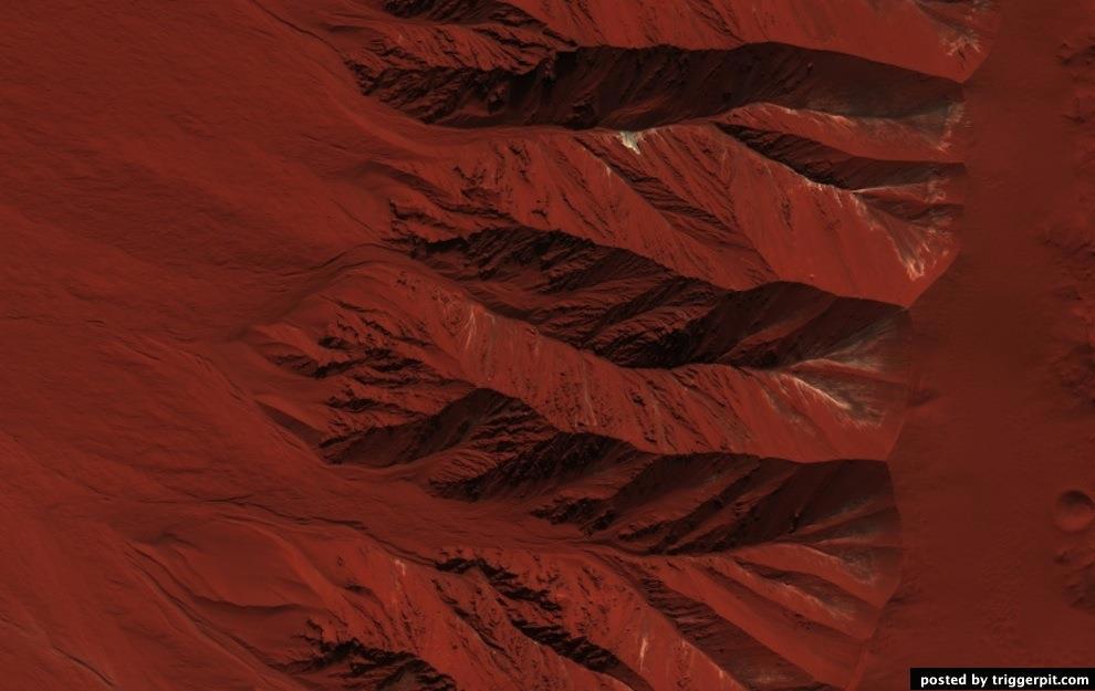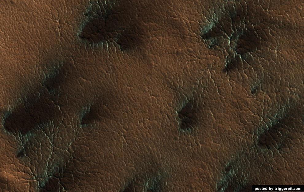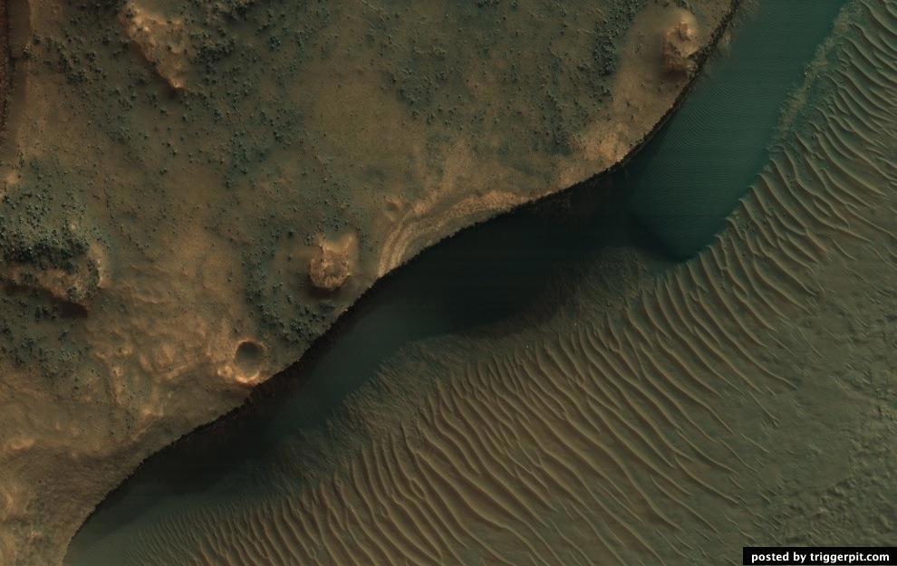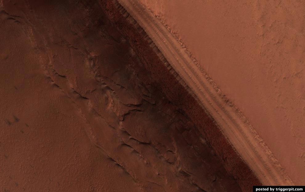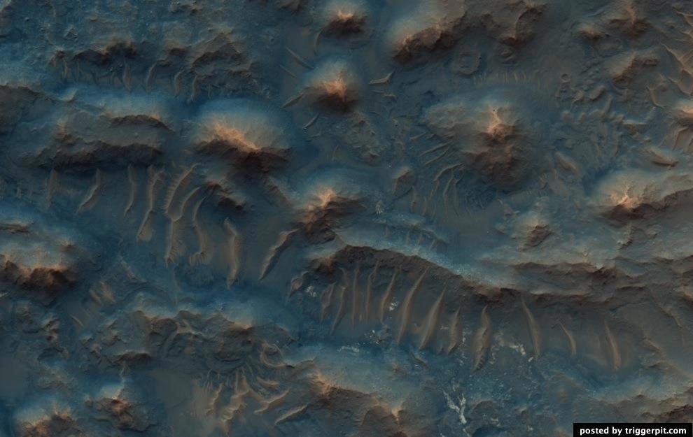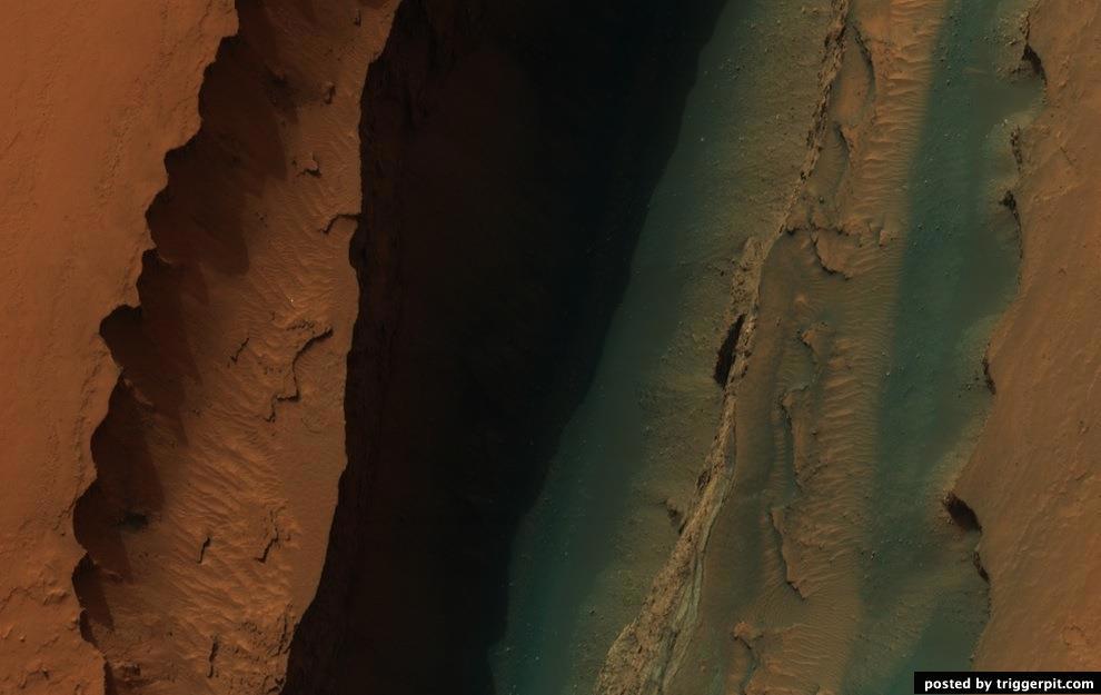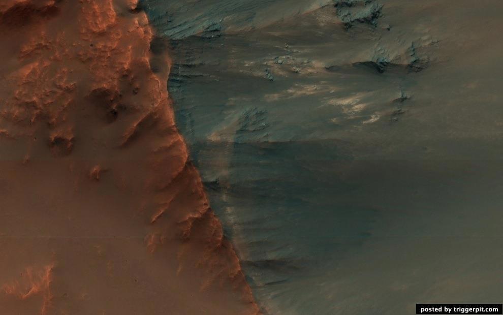 Представленные в подборке фотографии Марса развенчивают миф о том, что Марс это исключительно «Красная планета». Сокровища Марса, хоть и скрытые от человеческого глаза, но разноцветные. Судя по фото, марсианский пейзаж похож на пейзаж постапокалиптической Земли, или, что более вероятно, на пейзаж нашей планеты после того, как человечество уничтожит на ней все признаки жизни. Однако невзирая ни на что, марсианские виды завораживают и навивают на размышления о том, как бы выглядел процесс зарождения новой цивилизации на этой планете. HiRISE – это камера высокого разрешения, установленная на борту марсианского исследовательского спутника Orbiter (MRO). Если ты читаешь эту надпись, значит кто-то взял эту статью с BigPicture.ru Этот космический аппарат в настоящее время за одни земные сутки совершает приблизительно 13 витков вокруг Марса. 8 ноября 2006 года ученые официально объявили о начале первого научно-исследовательского этапа (основного этапа миссии топографической съемки). Этот этап длился два земных года. Детализированный научно-исследовательский этап будет продолжаться до тех пор, пока космический аппарат и камера не выйдут из строя. В центре управления HiRISE, который носит название HiROC, проводится ежедневная работа по планированию снимков, управлению камерой, получению, обработке и распределению информации. Центр расположен в Аризонском университете, в Тусоне.