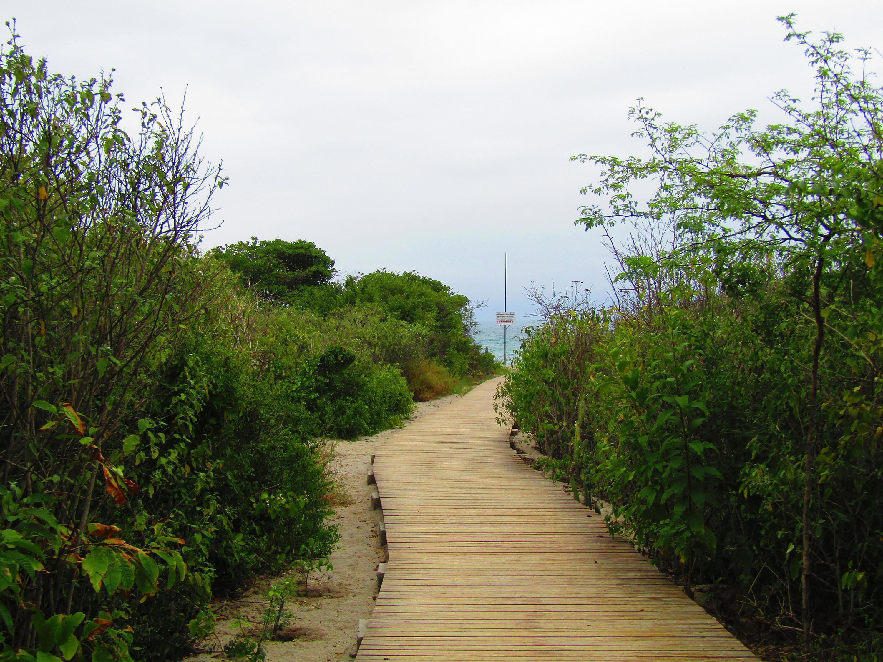 Береговая линия и дно устланы мелким белоснежным песком. Пляж мелкий, глубина набирается постепенно. Высокие волны и ветер отсутствуют. Вода в океане прозрачная, чистая, спокойная, теплая.