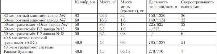 Согласно заявленным данным гранатомёты и миномёты имели ТТХ, приведённые в таблице 1.