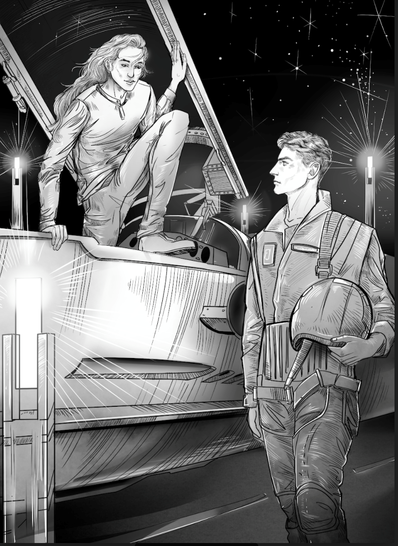А вот и еще одна иллюстрация к "Волчице". Это сцена из пролога, адмирал Аурелий и принц Малак аль Махди на причальной палубе "Светоносного". Художник - снова HerbstRegen.