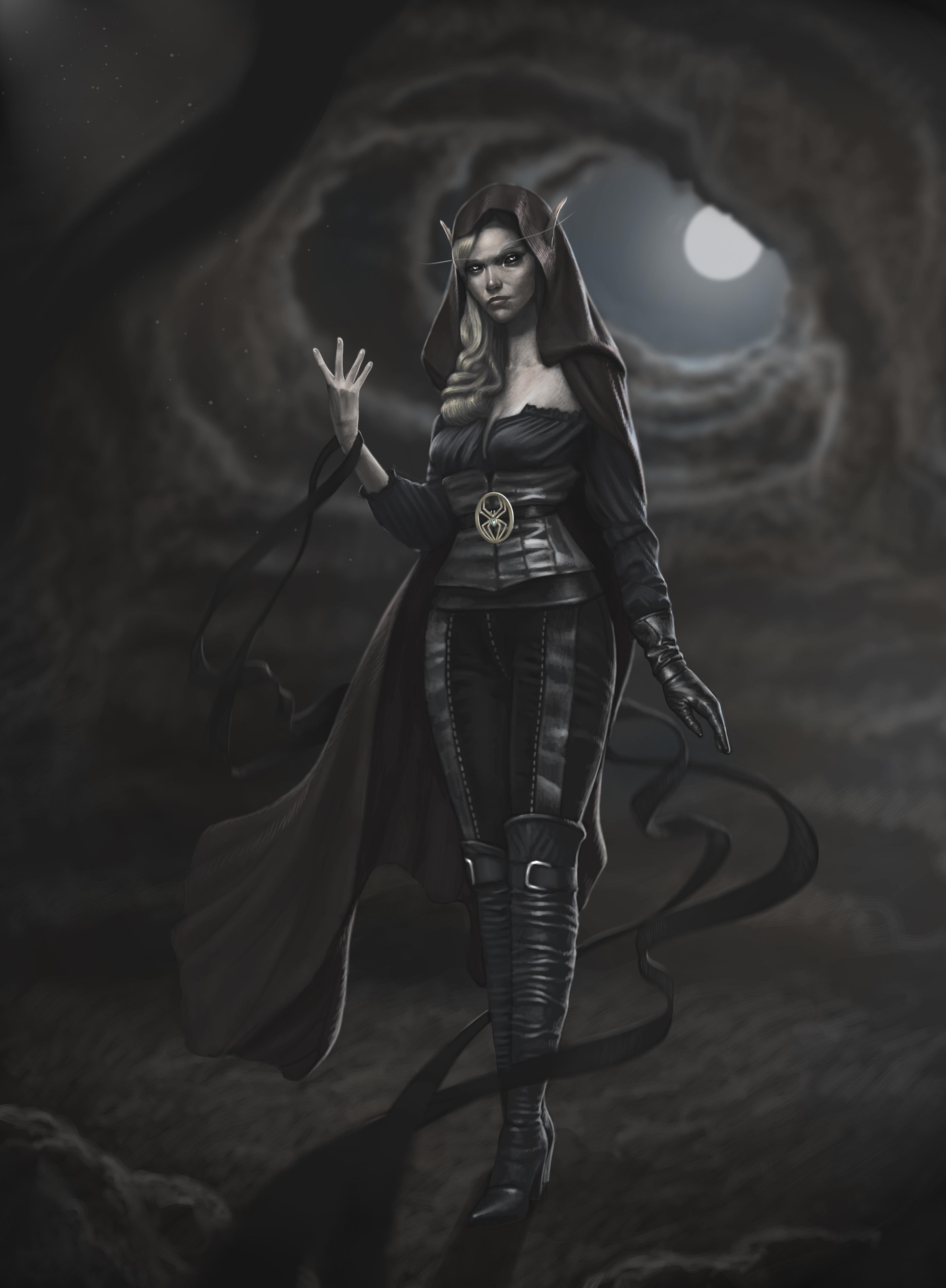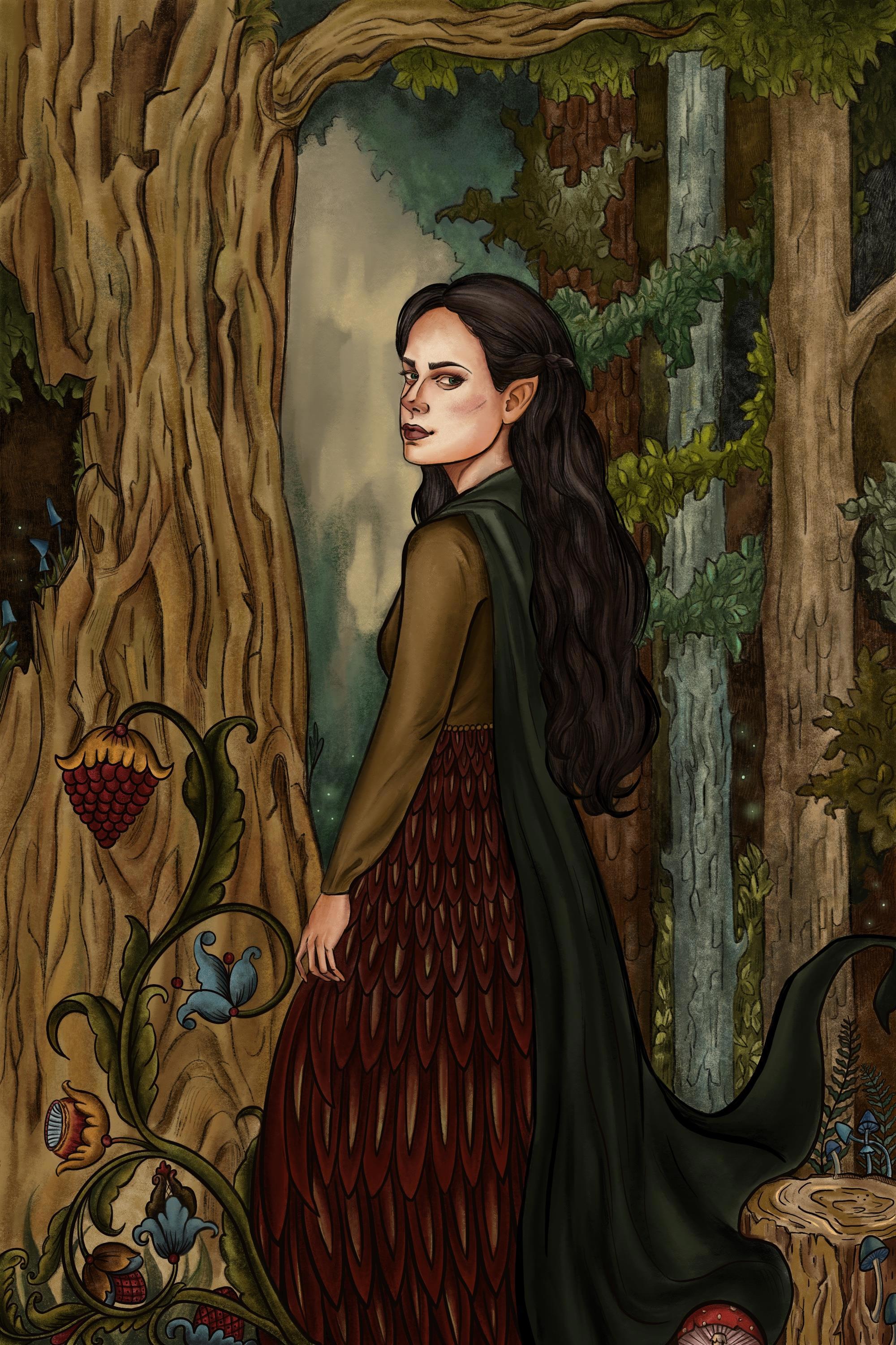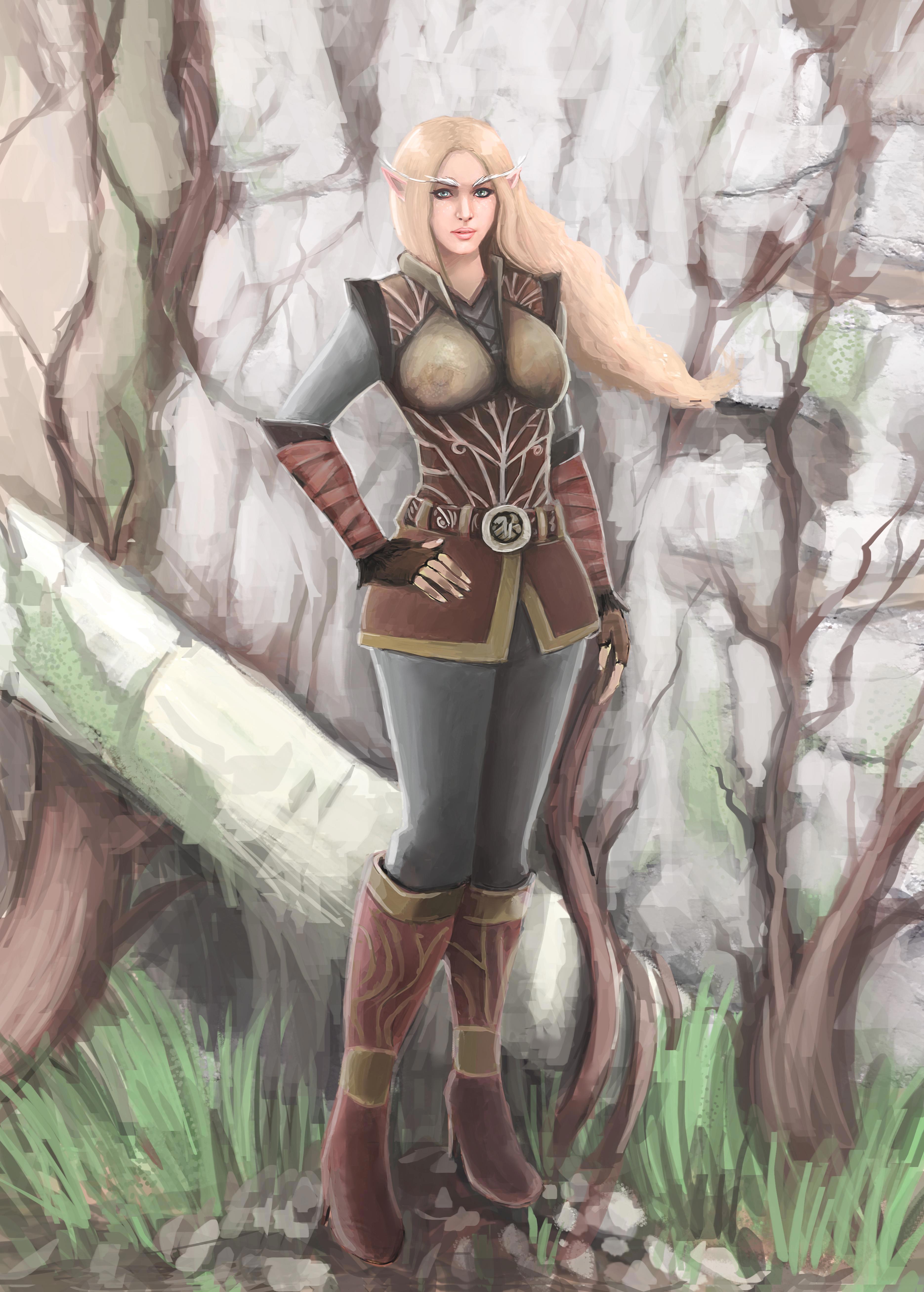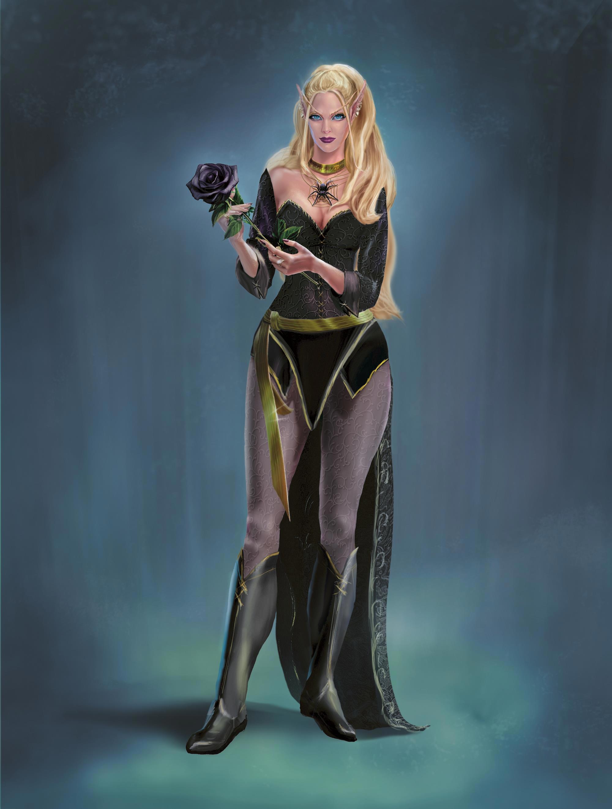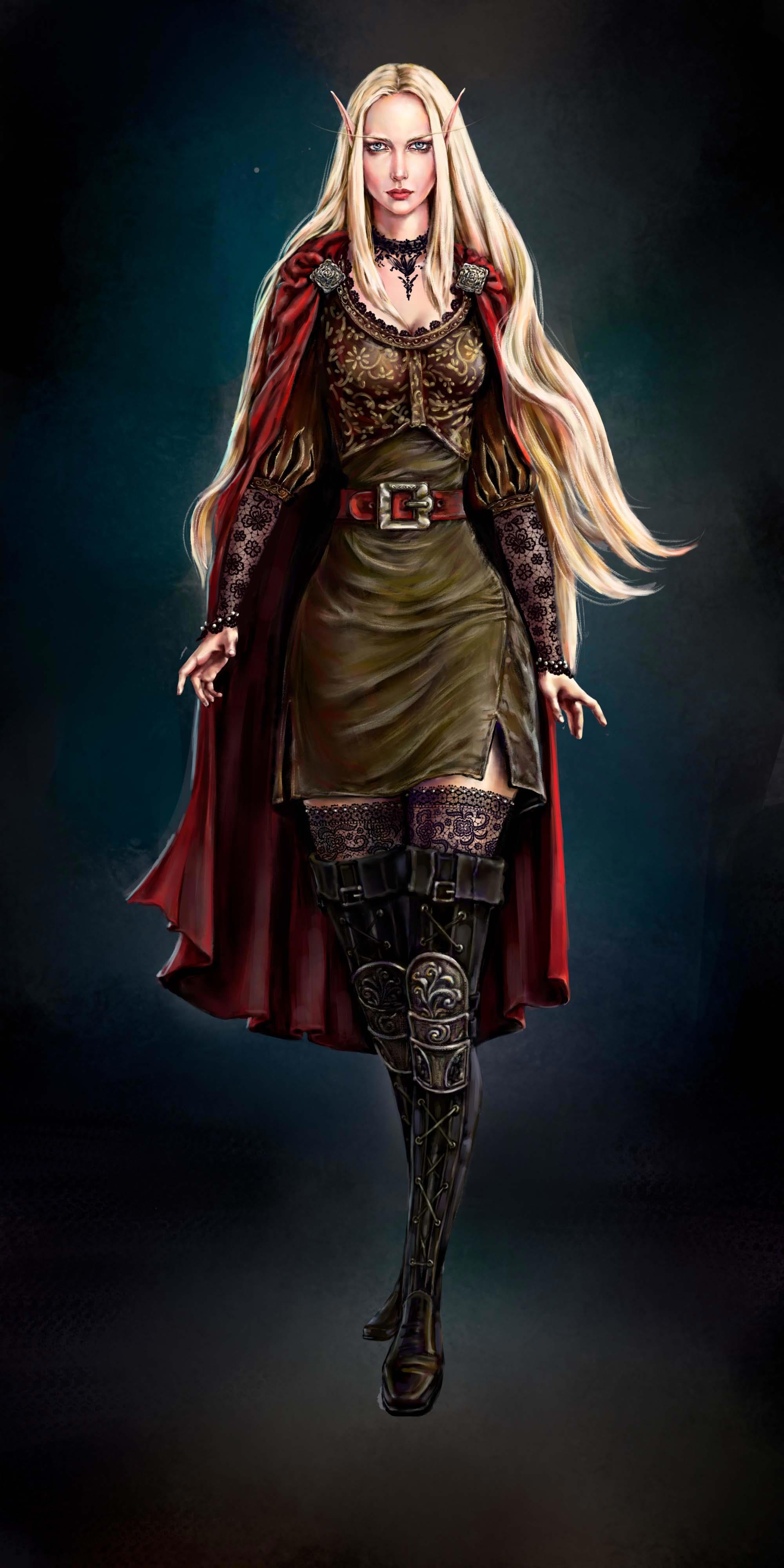 В отличие от привычного представления здесь она в своем истинном облике являлась высшим эльфом. Важной особенность высших эльфов в моей серии являлся очень сильный половой диморфизм. У женщин доминирует фигура "стройная груша", у мужчин - широкоплечий треугольник.