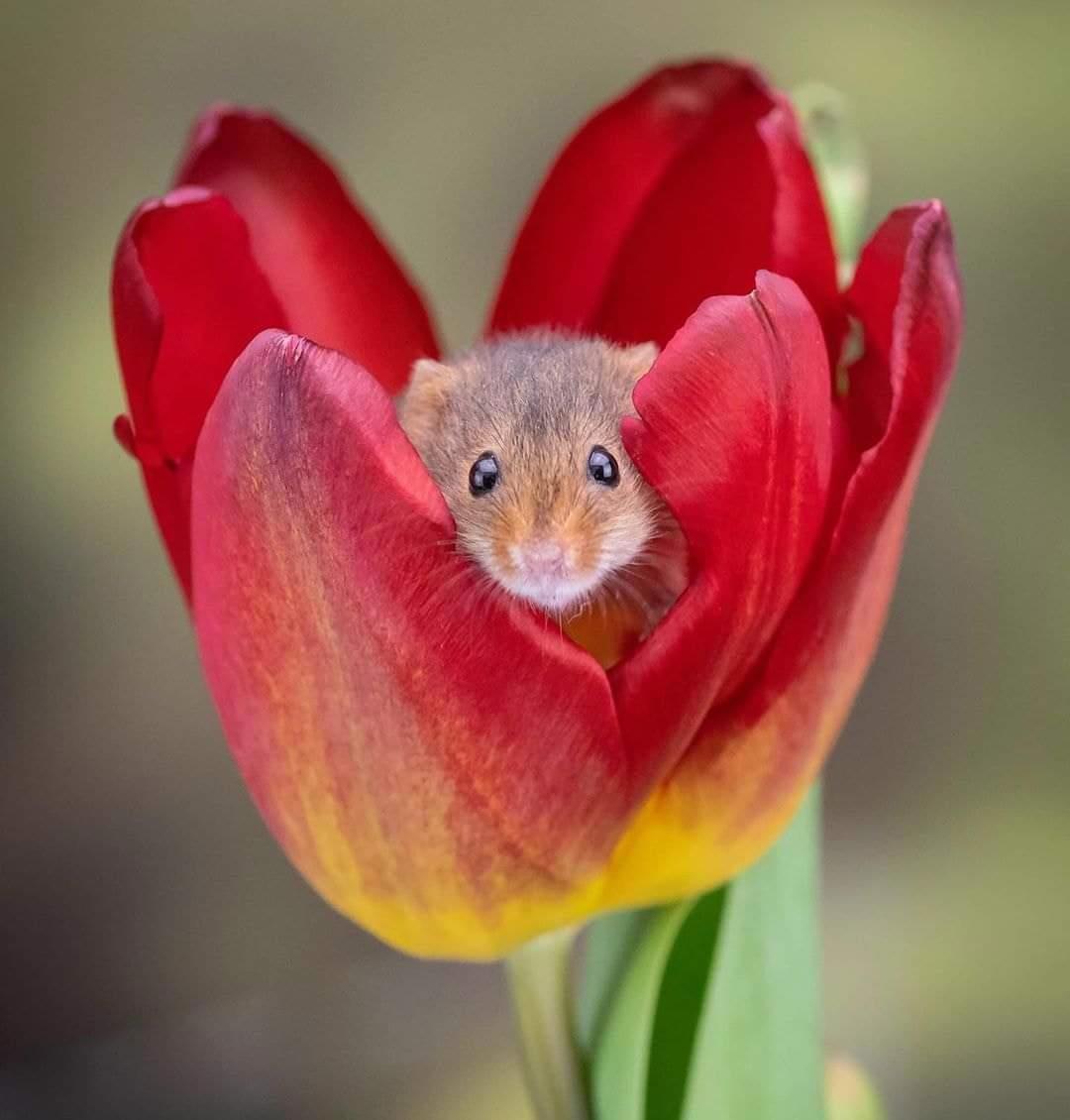 Мелкий спрятался в тюльпане