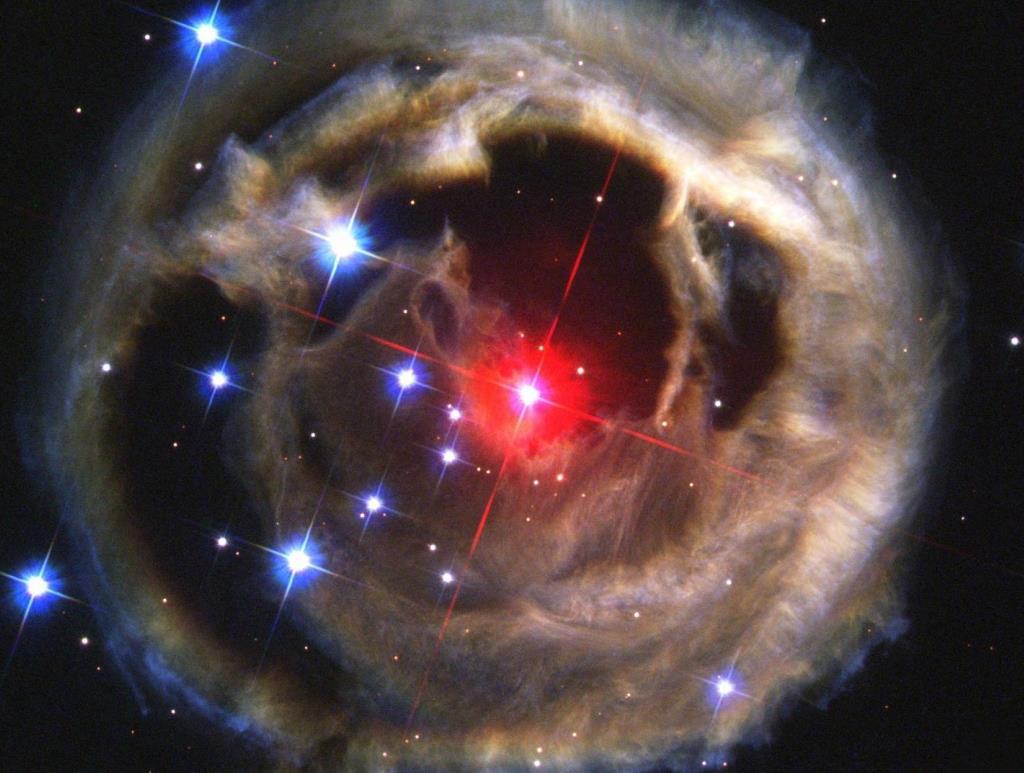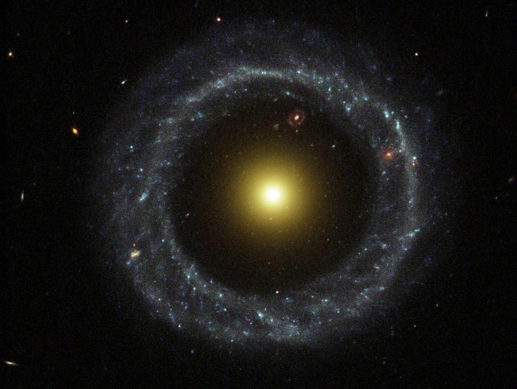 Кольцо из голубых звёзд вокруг ядра галактики (объект Хога)