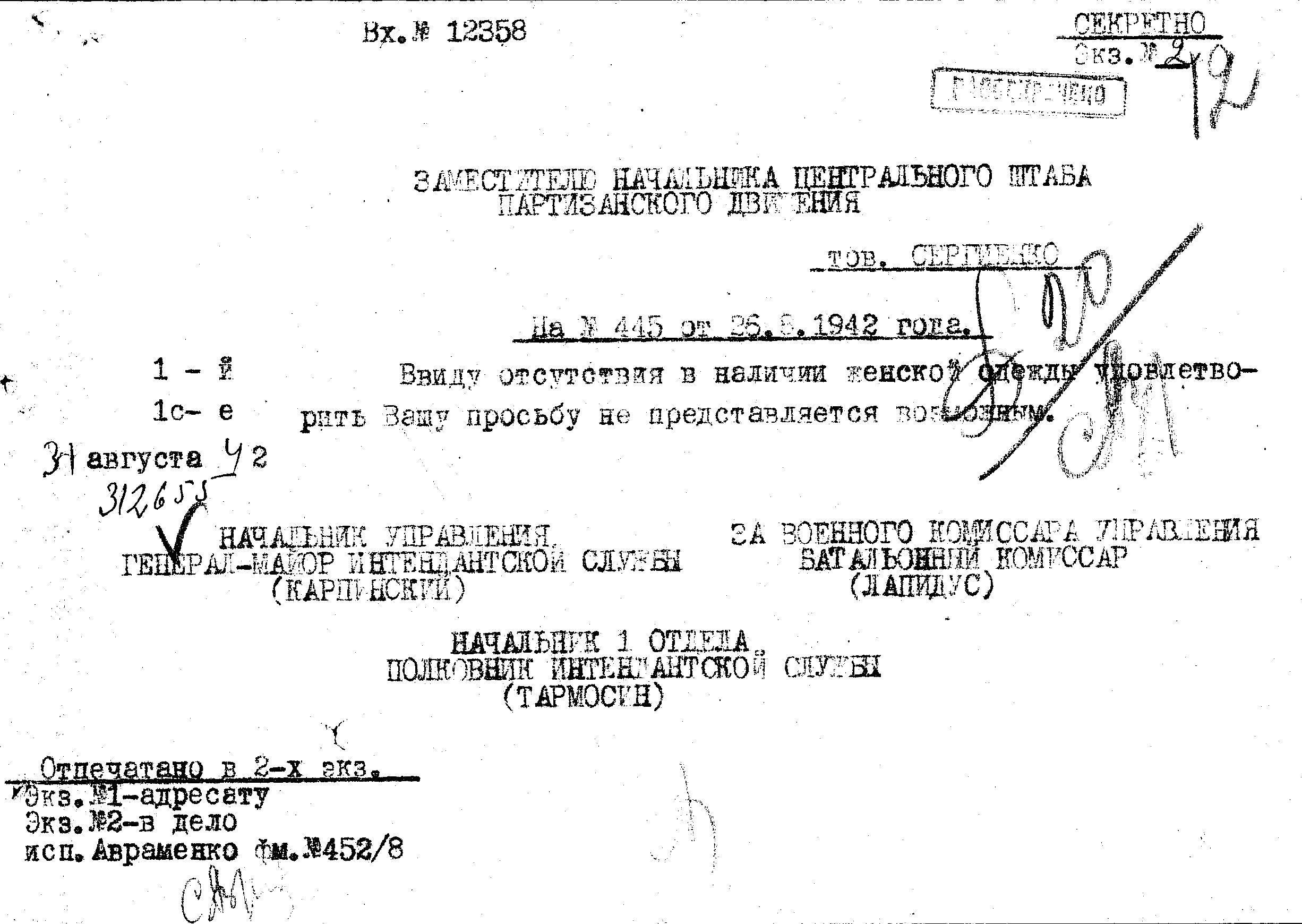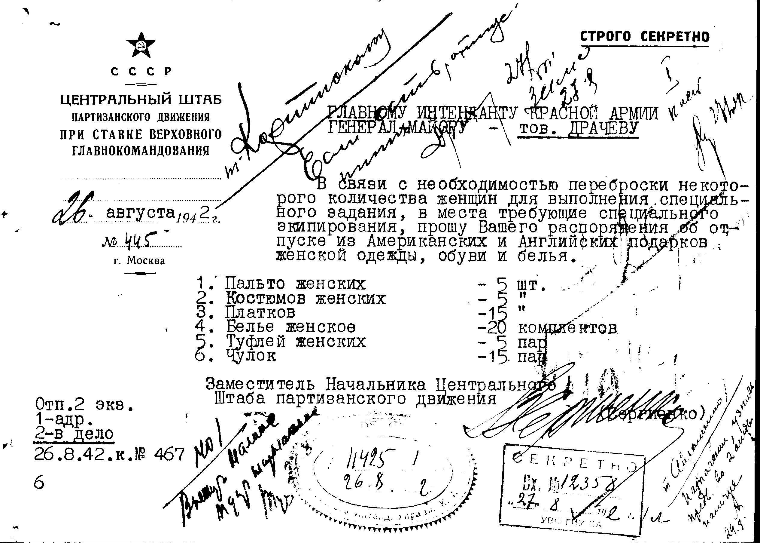 Как Вы можете видеть, и разведчики и партизаны обеспечивались практически в общем порядке и далеко не все их запросы обеспечивались.