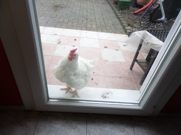 Муж перед работой всех курочек выпустит на поляну пастись, а этой клац-перед мордой дверь закроет. И если у других есть возможность туда-сюда перелетать, когда им вздумается, то у Стеши крылышки короткие, летать она не умеет. И вот сидит она во дворе, скучает, все травинки повыщипала, весь дворик, извиняюсь, обосрала. Молодец девочка, давай, самовыражайся. Папка с работы придет, все помоет.