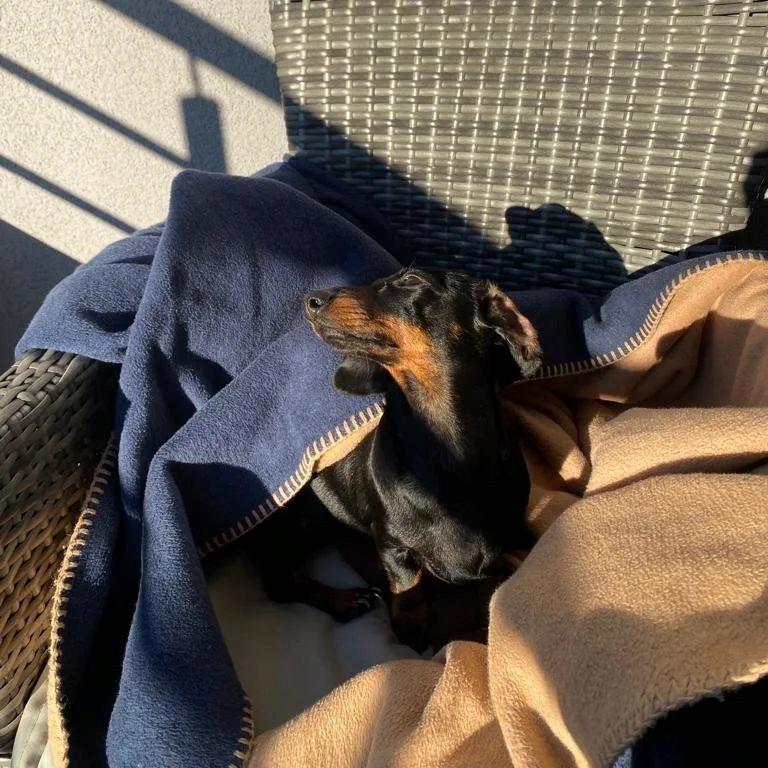Для примера - маленькая жопа весом в 3 кило и с характером истинной таксы. недавно мы переехали далеко от дома, и если раньше Клёпка особенно солнцем не интересовалась, не ложилась на солнышке в квартире, как делают некоторые собачки, абсолютное равнодушие. Здесь же история совсем другая. Вот Клёпка карабкается в кресло, а дальше сидит там одна (!!!), даже когда все выходят. Сейчас, когда дождей нет, на балконе солнце светит лишь пару часов, так что Клепкины солнечные ванны непродолжительные, но посмотрите, она улыбается!