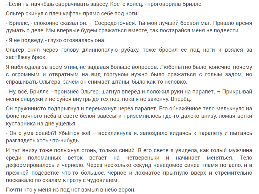 Чтобы не мучить забежавших на картинку людей долгими словесами, просто скажу, что в этих двух главах, к которым нарисована иллюстрация, вредный ведьмарь поступил как настоящий человек, от чего... навсегда перестал быть человеком...