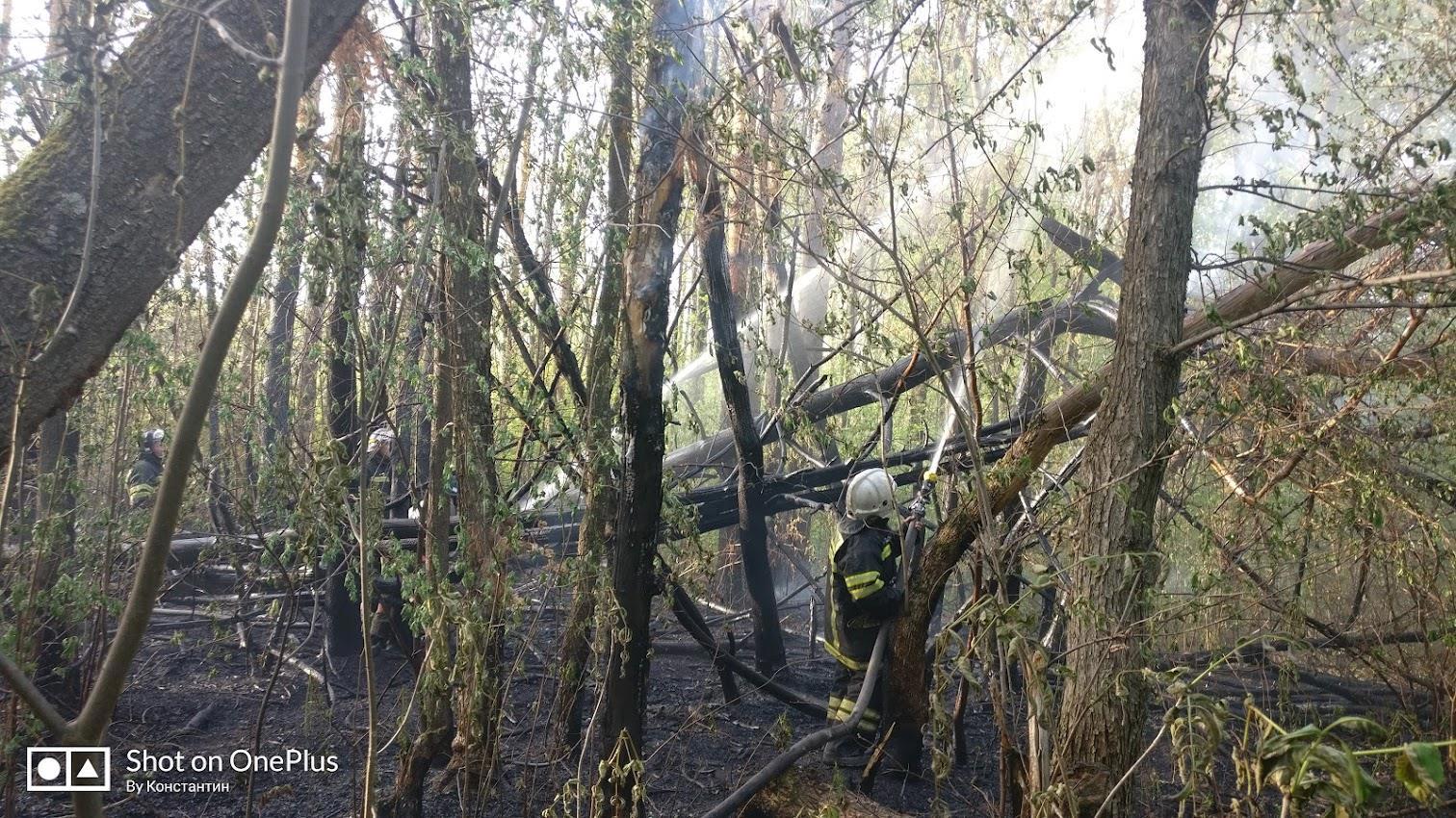 Добежав до поезда, я по привычке спросил старшего, но на мой четкий вопрос, мне ответили что то невнятное, и указали в сторону густого кустарника. Я решил, что если не найду старшего, буду действовать сам, тушить надо все, запас воды есть. Дальше я либо прибьюсь к кому ни будь из "тушил", либо не буду отсвечивать и буду тушить фланги и "пяту" кромки (пята, двигающееся против ветра пламя, обычно слабее фронта). Зайти в лес было не так то просто, заросли обгоревшего клена, и стелящийся шиповник, максимально тормозили. Лямки и шланг моего ранца постоянно зацеплялись за ветки, а ноги путались в петлях шиповника. Где то приходилось прикладывать большие усилия, для того чтобы раздвинуть ветки и протиснуться дальше.