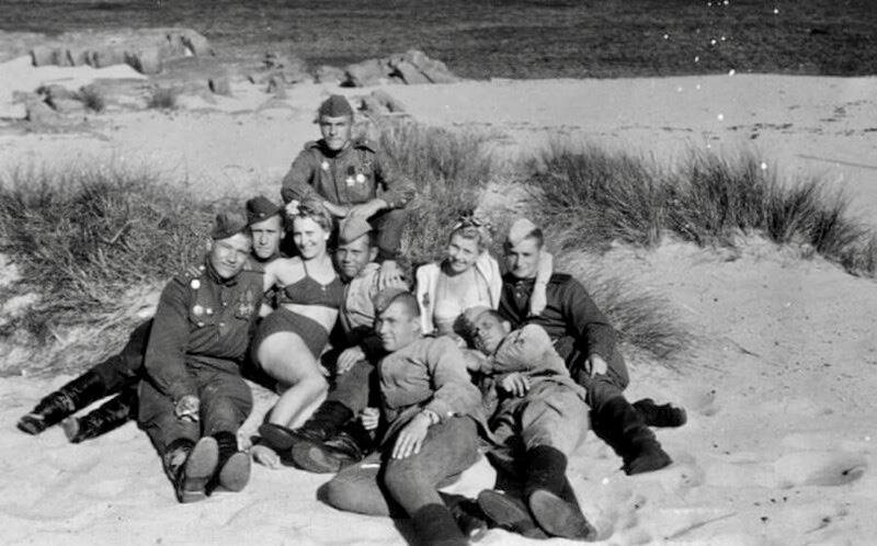 1945-1946 года, Дания, о.Борнхольм. Советские солдаты отдыхают на пляже острова с местными девушками.