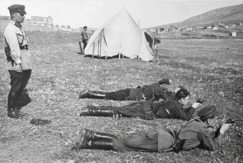 1934 год. Сдача норм на значок «Ворошиловский стрелок» комсоставом Кавказской Краснознамённой армии.