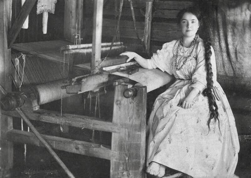 1900-е годы, Костромская губ., Кинешемский уезд. Крестьянка у ткацкого станка.