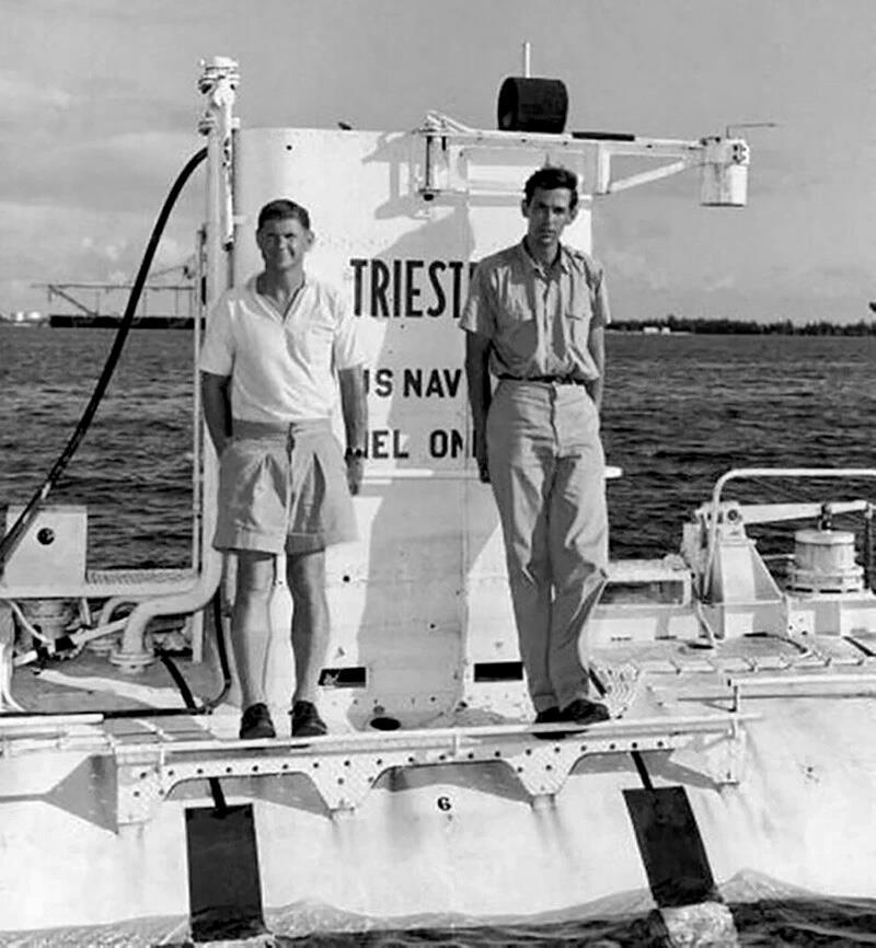 23 января 1960 года. Жак Пикар и Дон Уолш на батискафе «Триест», на котором погрузились на глубину 10 919 м.