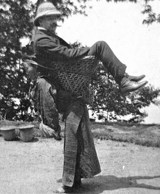1903 год, Индия, Западная Бенгалия. Женщина несет на своей спине британского купца.