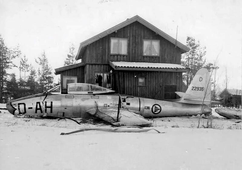 27 января 1955 года, Норвегия. Ранним утром одна норвежская семья сидела дома и мирно завтракала, когда в их дворе аварийно приземлился F-84G. Далее завтрак продолжился в компании с пилотом.