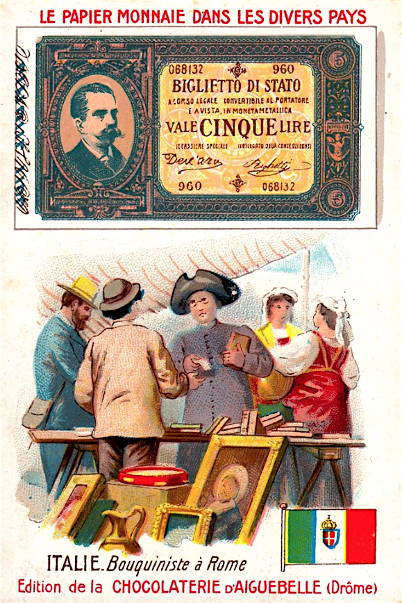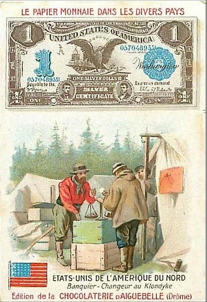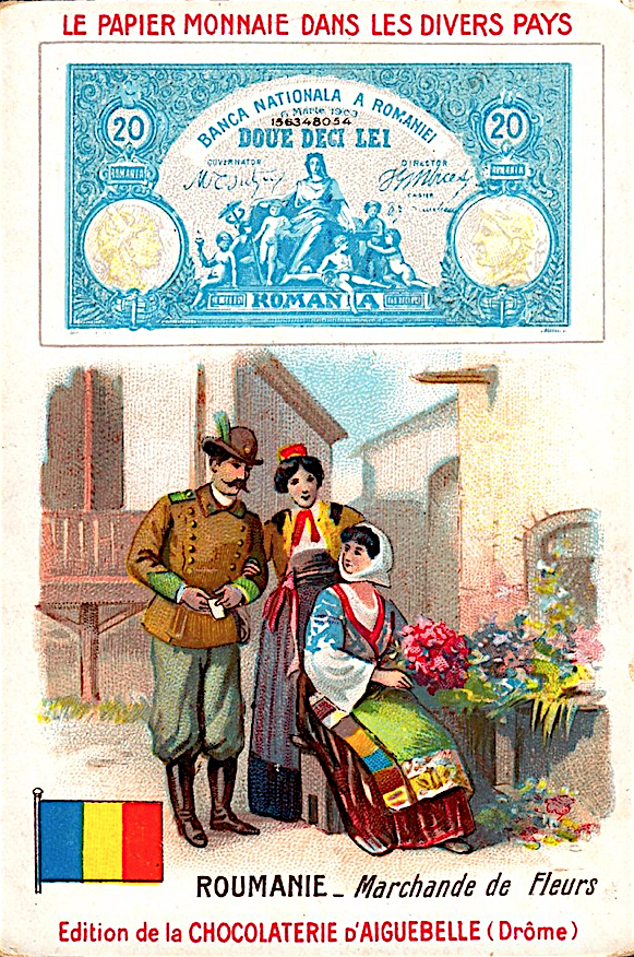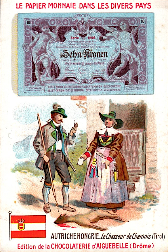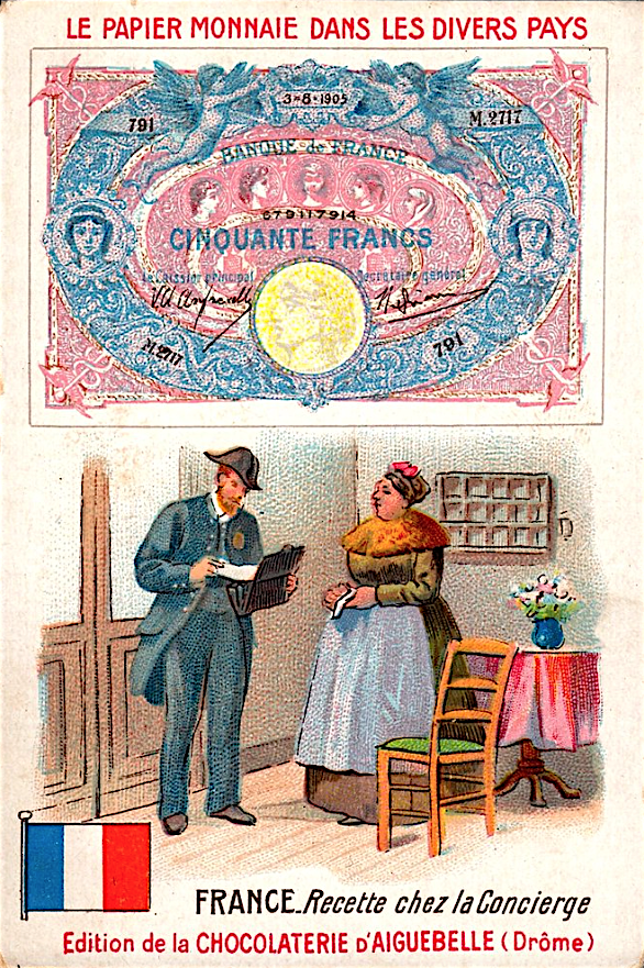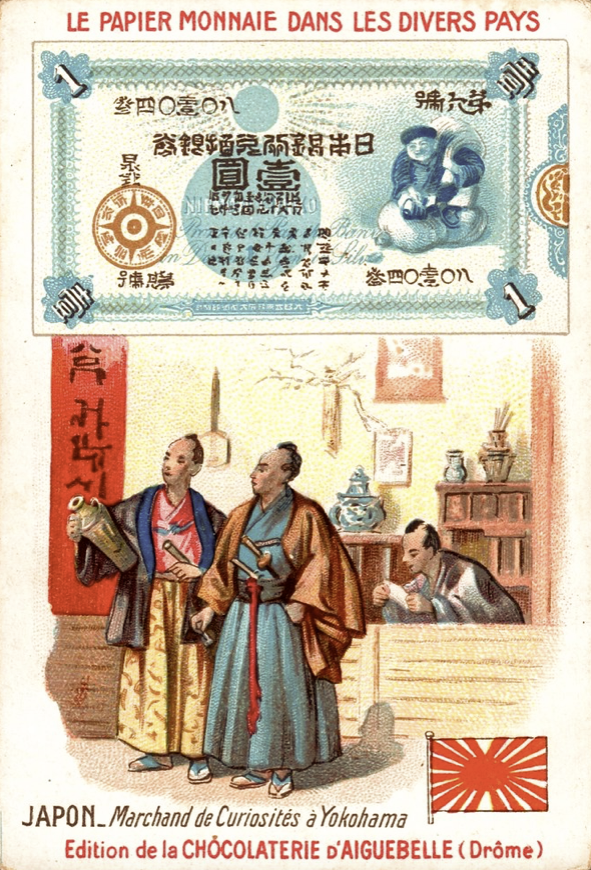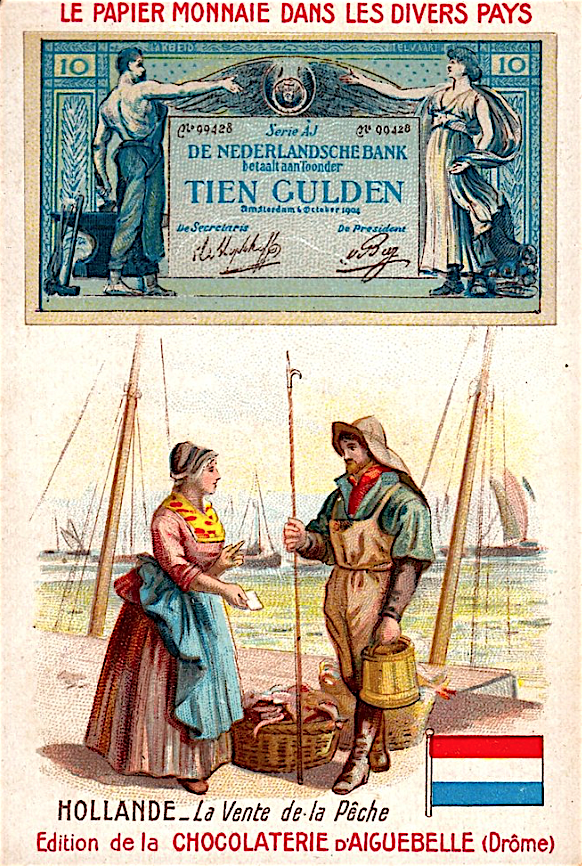 Французские вкладыши в шоколад на тему банкнот разных стран конца 19 - начала 20 веков.