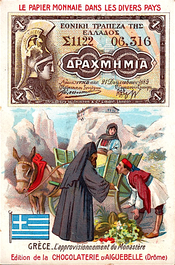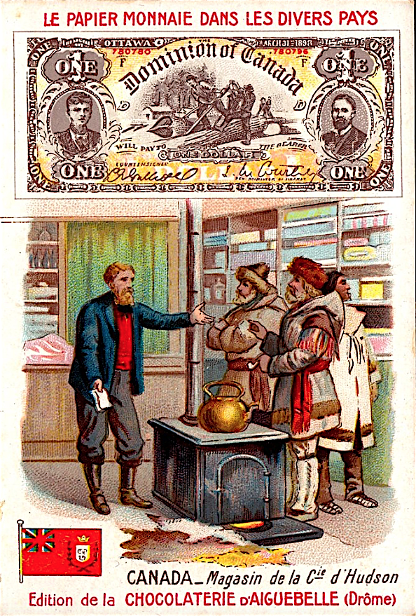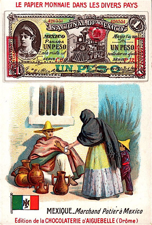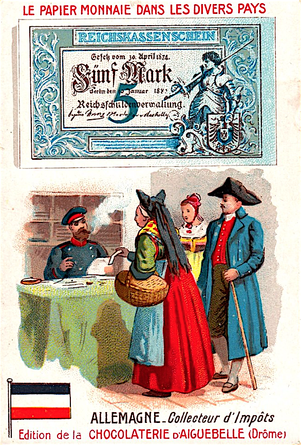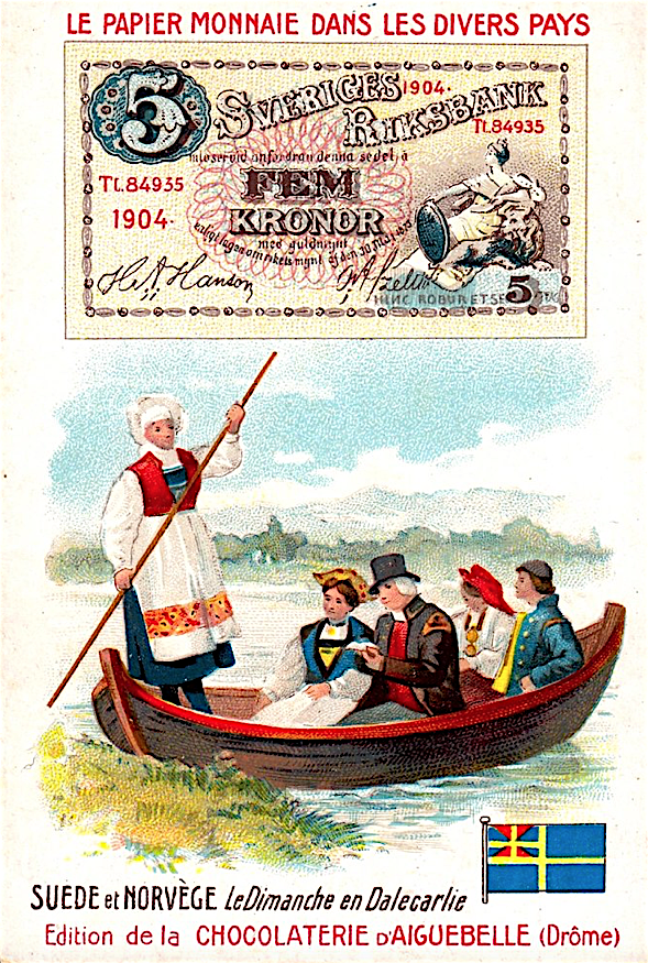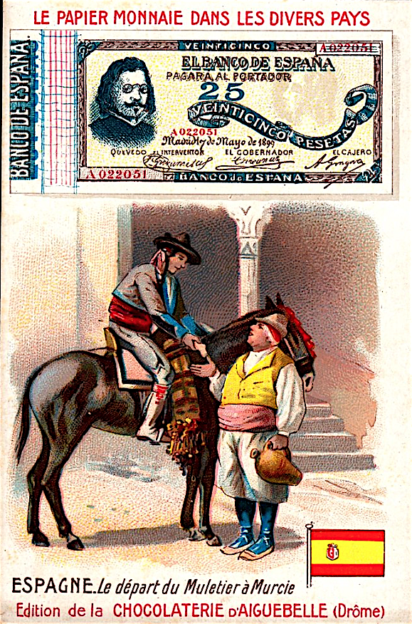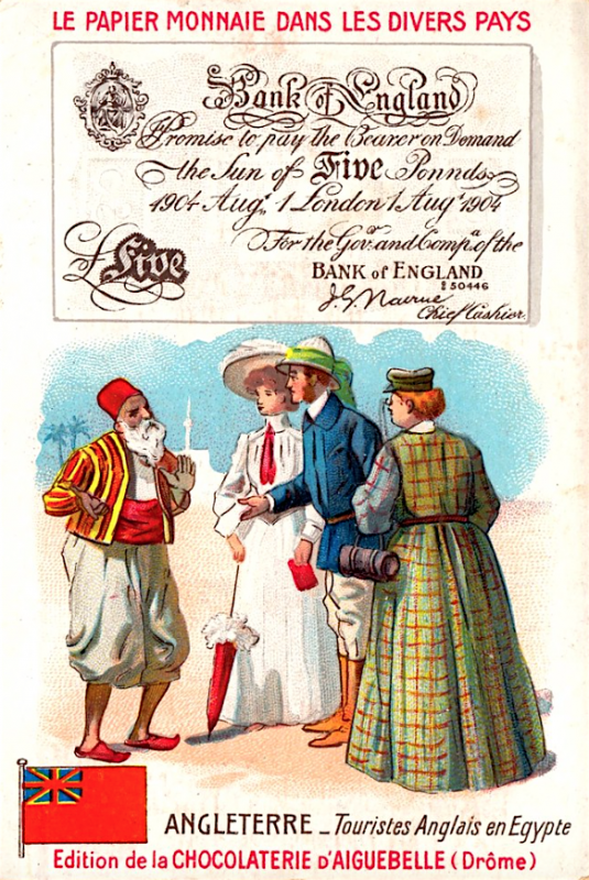Французские вкладыши в шоколад на тему банкнот разных стран конца 19 - начала 20 веков.