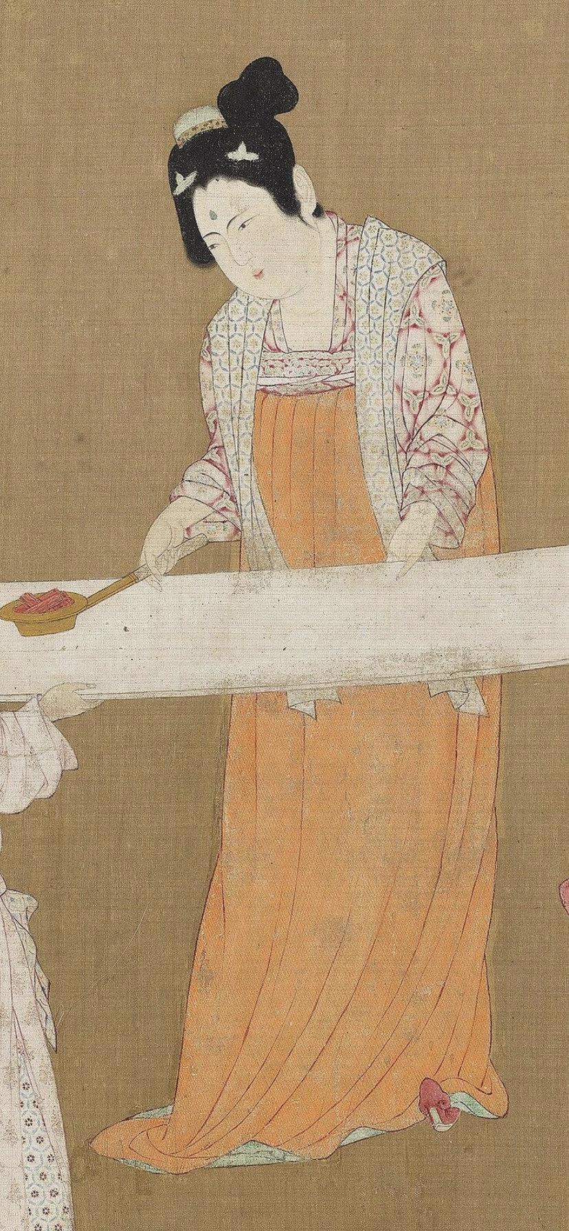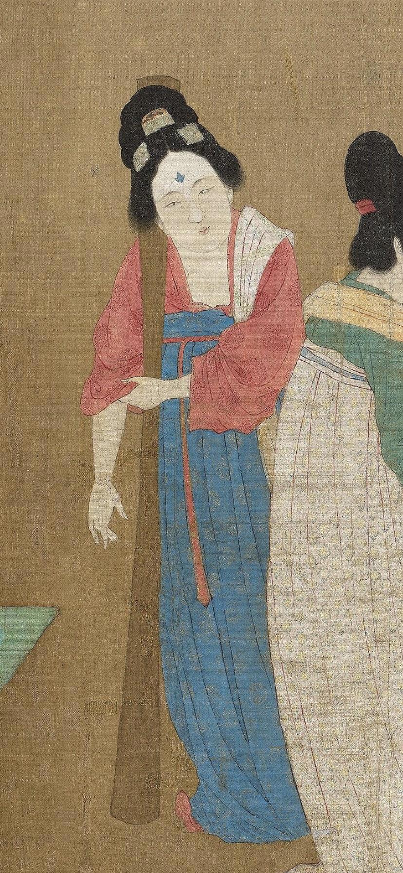 Все присутствующие дамы круглолицы и пышны, согласно образцу красоты эпохи Тан.