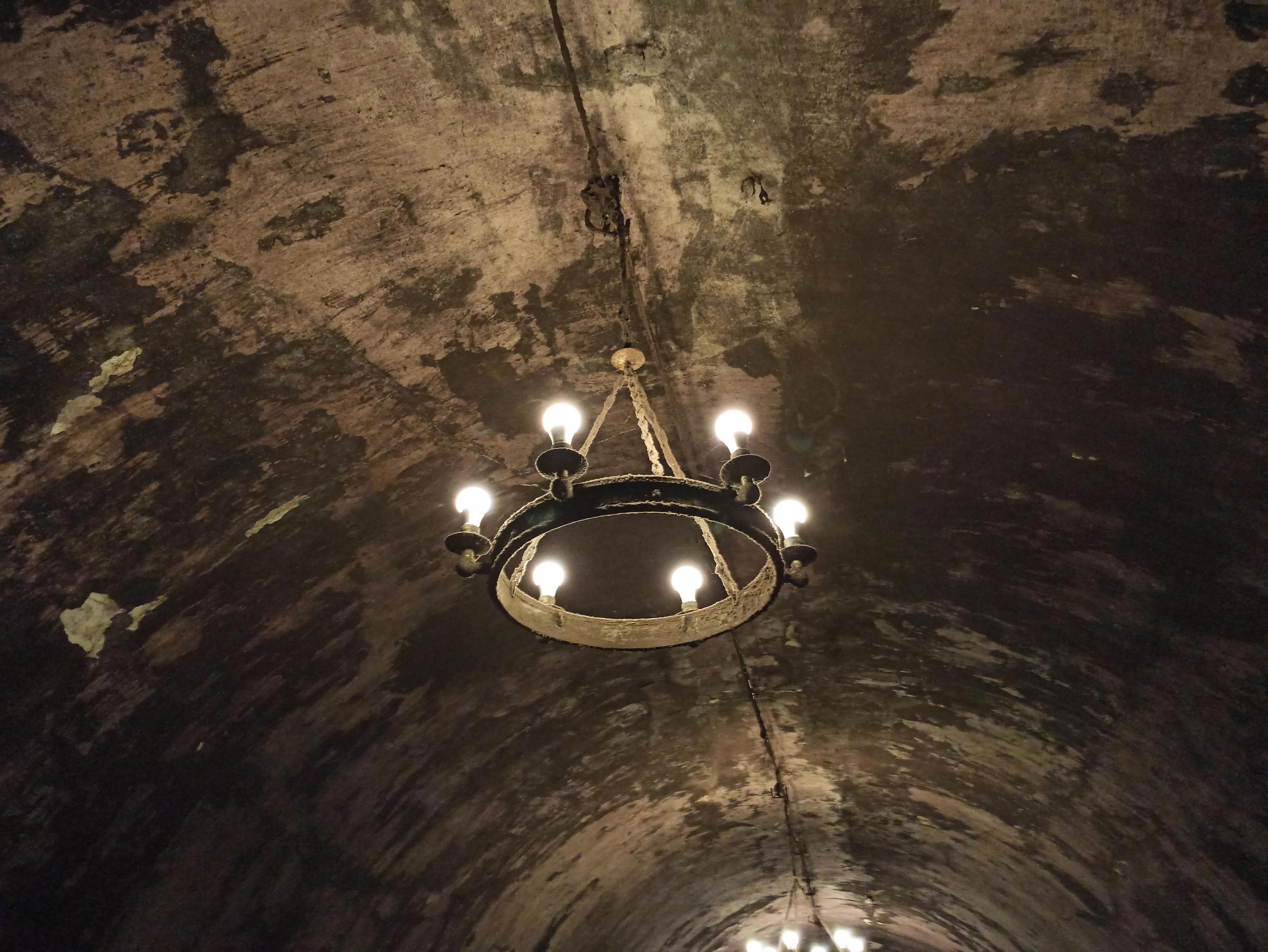 Например, вот такая люстра. Когда-то в ней были свечки, а сейчас наисовременнейшие лампочки.