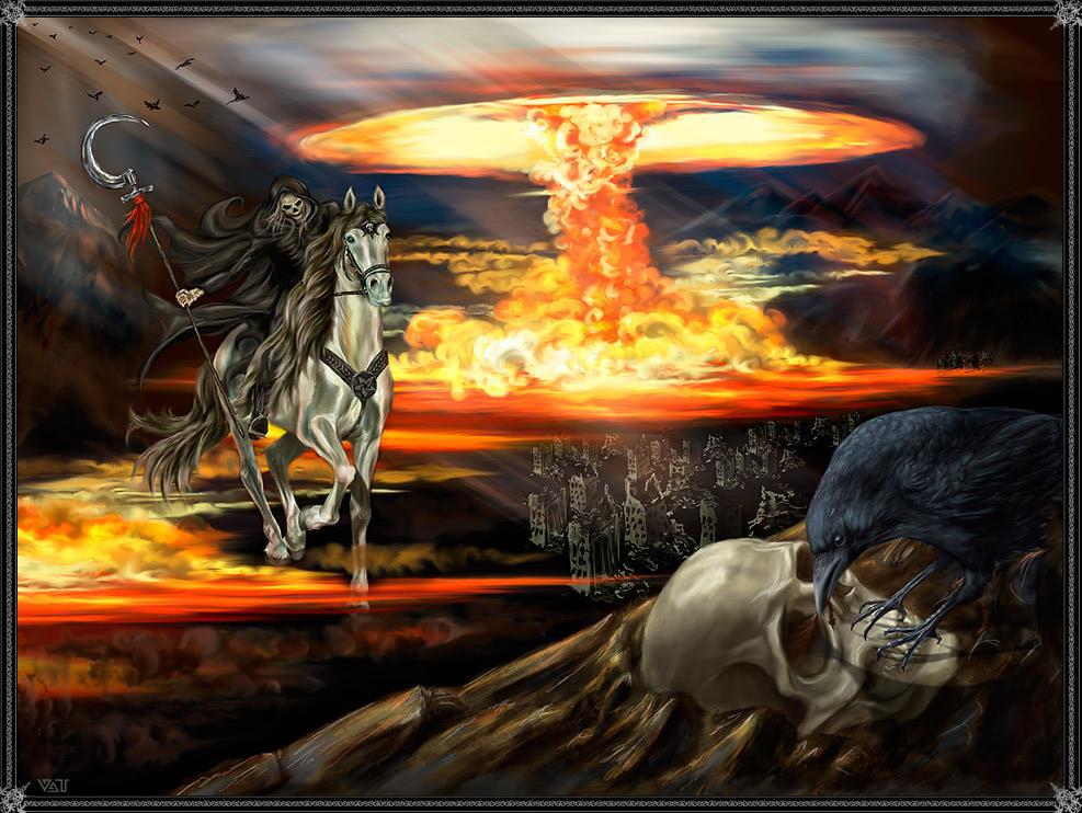 * Четыре всадника Апокалипсиса» — термин, описывающий четырёх персонажей из шестой главы Откровения Иоанна Богослова, последней из книг Нового Завета. Учёные до сих пор расходятся во мнениях, что именно олицетворяет каждый из всадников, однако их часто именуют Завоеватель (Чума, Болезнь, Мор), Война, Голод и Смерть (Мор). Бог призывает их и наделяет силой сеять святой хаос и разрушение в мире. Всадники появляются строго друг за другом, каждый с открытием очередной из первых четырёх из семи печатей книги Откровения.