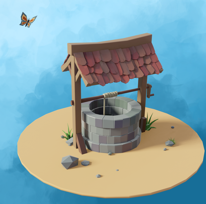 Это практически полная копия урока от Grant Abbitt на ютубе, кроме травы и бабочек. Их я присобачила уже самостоятельно. Вообще, странно, что я не натыкалась раньше на его канал, мне очень нравится, что он делает. Для первого знакомства с Блендером оно, может, сложновато, но в плане упорядочить уже знакомые вещи - прямо супер.