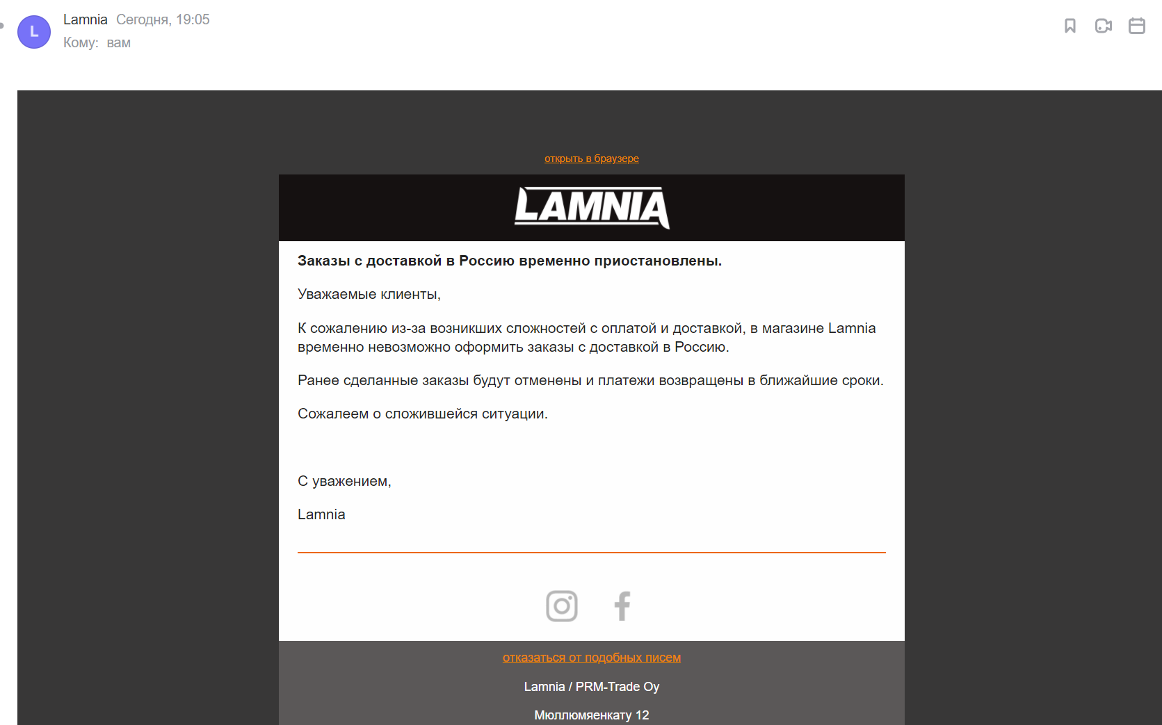Автор: Ивар РавиДобрый вечер! Периодически заказывал в финском интернет-магазине товары для активного отдыха. Сегодня пришло письмо от сайта, что заказ выполнен не будет, хотя был оплачен две недели назад. Некоторые позиции на складе отсутствовали, поэтому была задержка заказа. Кто знает, есть ли у меня юридические основания подать в суд за невыполнение обязательств магазина?