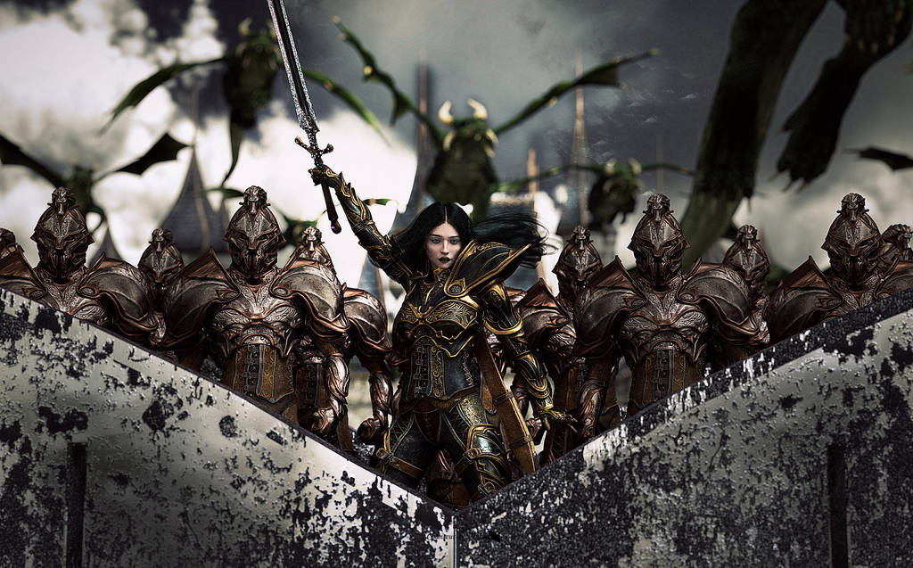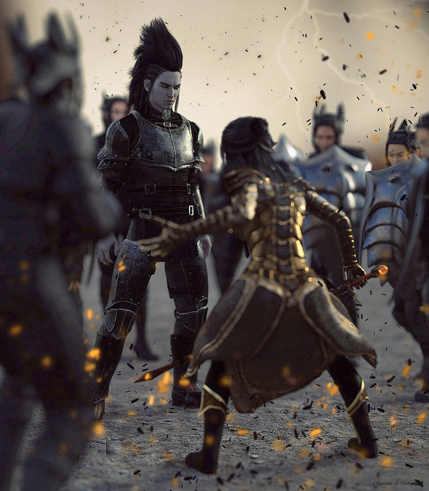 Князь никаких нареканий не вызвал, солдат, пришедший к Тёмному, — тоже. Да и народ, попрятавшийся, я как-то себе представляю, потому что им дана характеристика. А вот армия светлых вышла какой-то аморфной. Пресветлая так вообще слишком абстрактная. Диалоги немного спасают, потому балл не 8, но всё равно... Чувство, что внешность мужчины продиктована артом или, наоборот, отсутствием на нём.