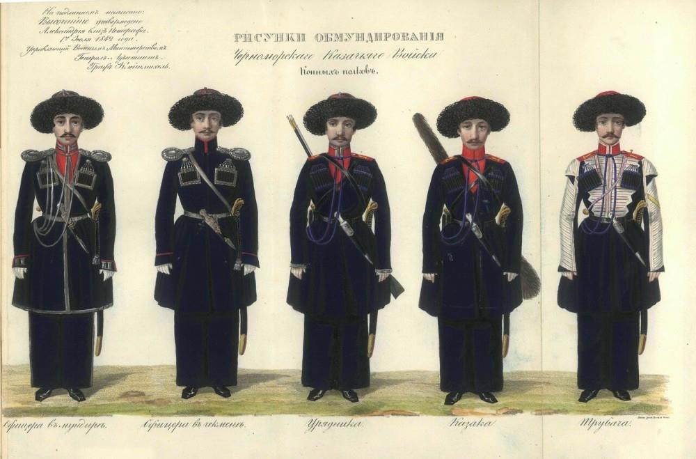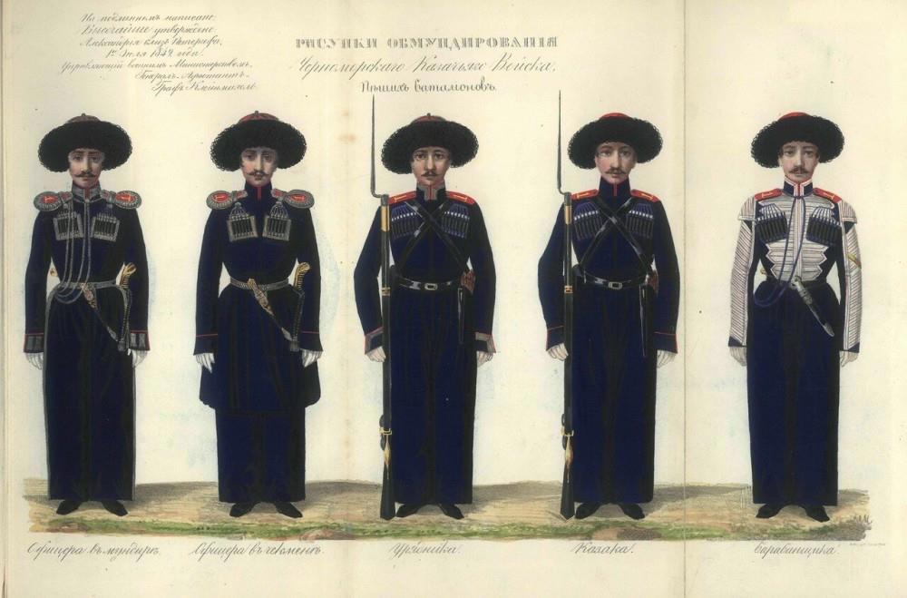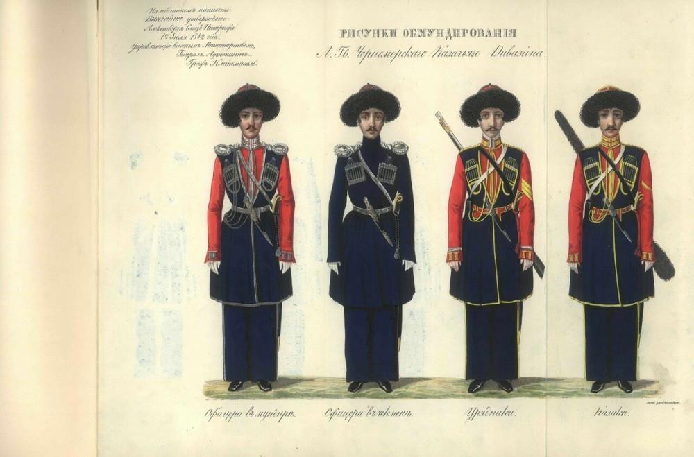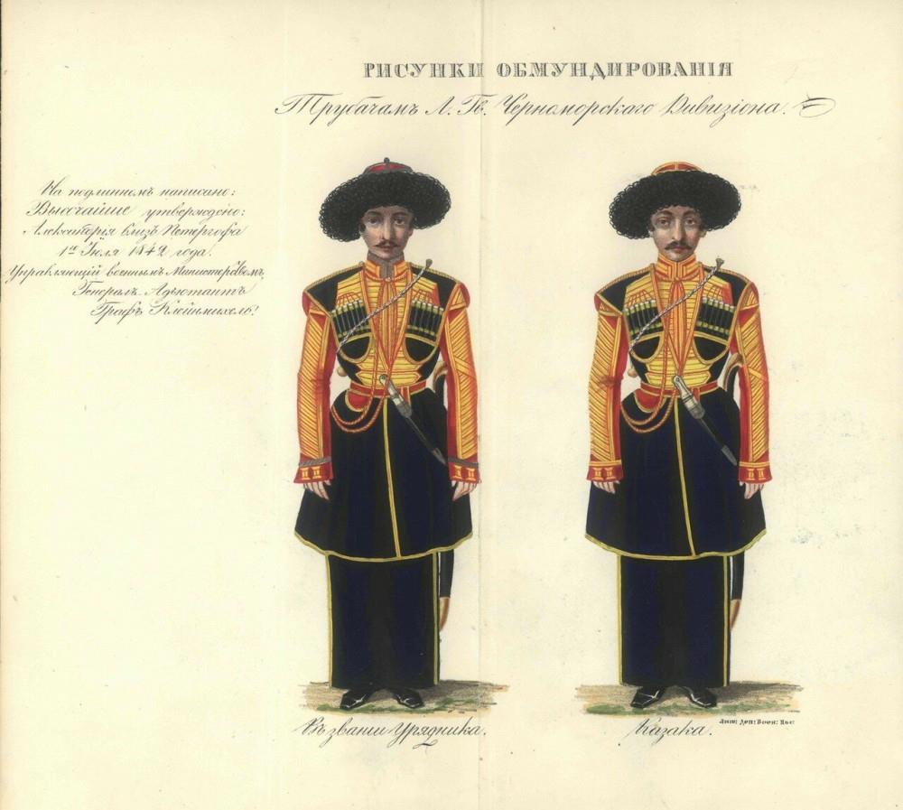 1842 год. Положение о Черноморском казачьем войске. Образцы формы.