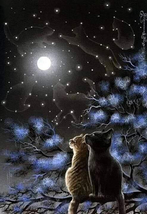 Темнеет ночь, у кошки - мистические глазки,