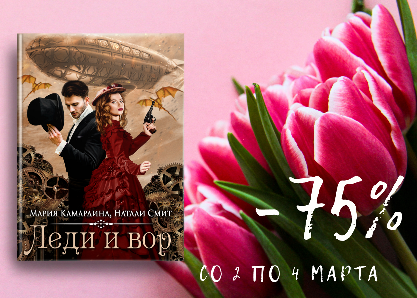 Автор: Мария КамардинаЭтот пост должен был выйти восьмого марта, к празднику. Но мы с соавтором подумали, что нет смысла ждать неделю, если людям уже сейчас нужны лёгкие, позитивные книги с хорошим концом. Поэтому скидку на роман «Леди и вор» в 75% мы объявляем сегодня.