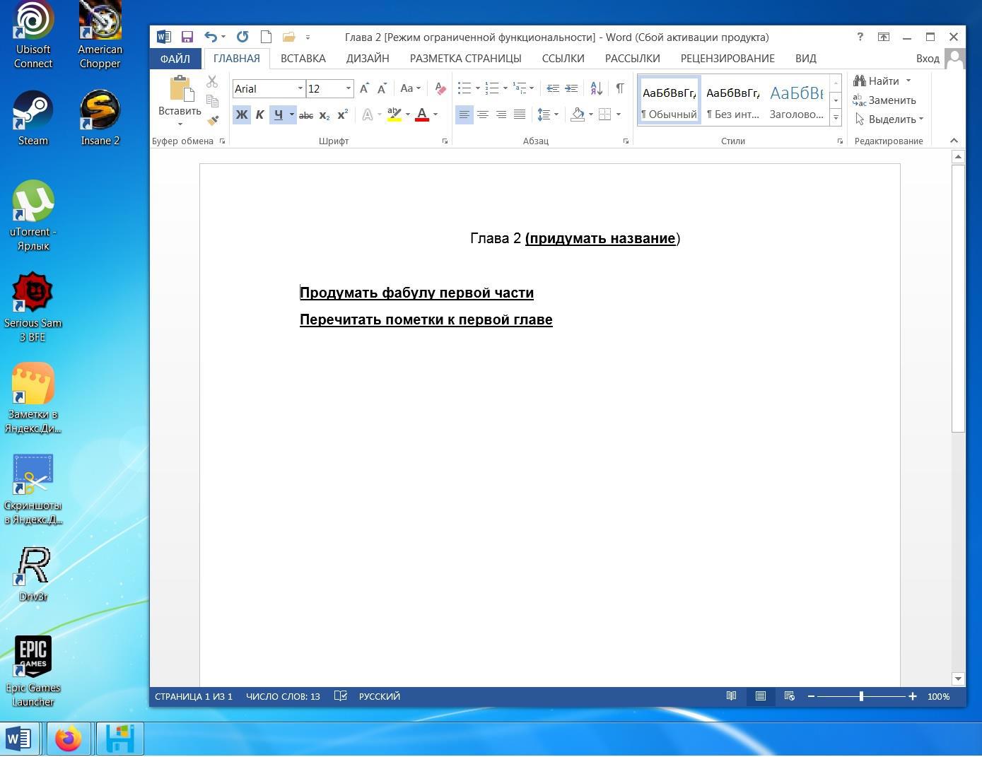 И ещё: пусть файл, в котором вы пишете книгу не будет являть собой вот такое