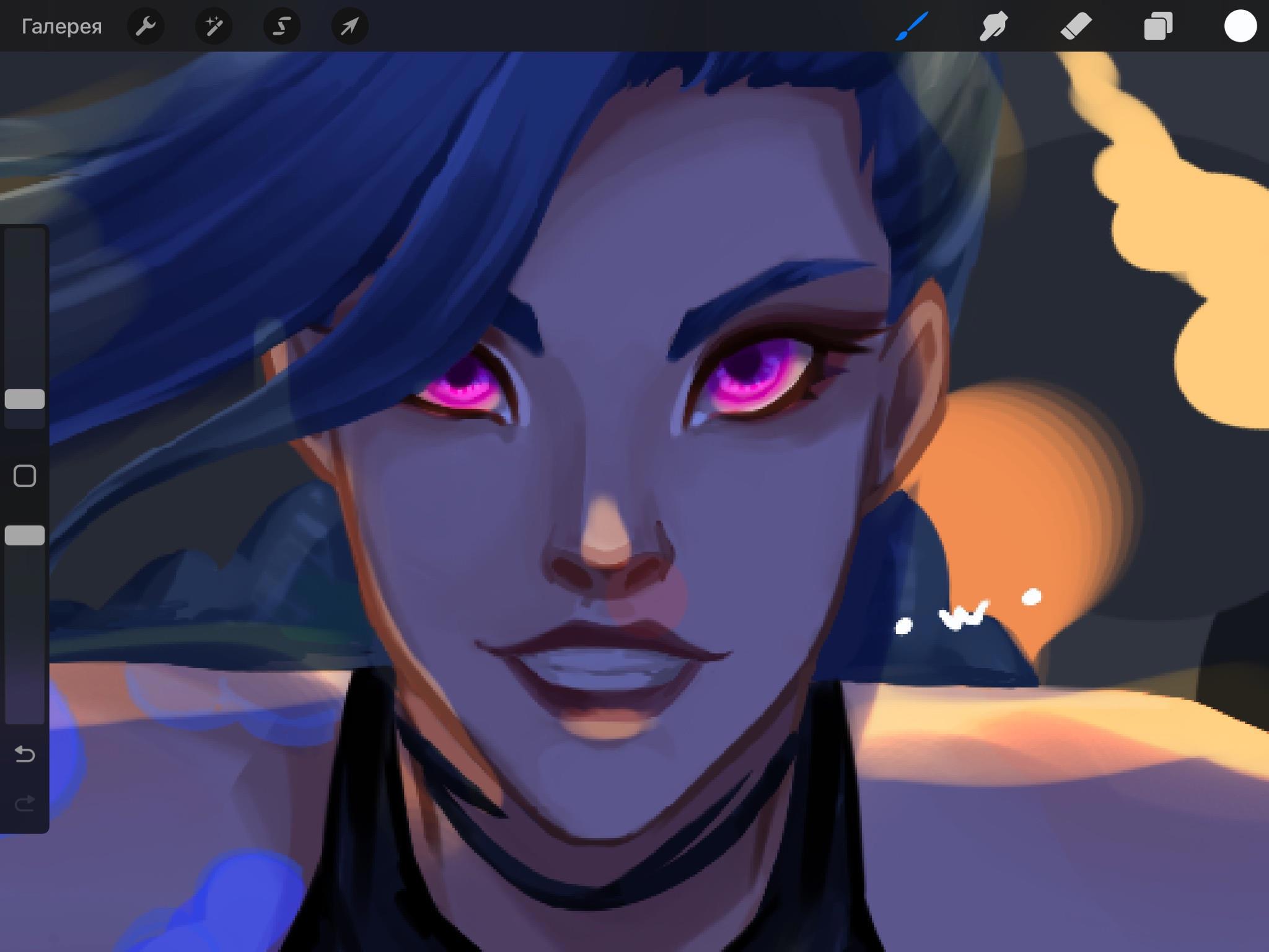 Так же, я обещалась выпустить фан арт с Джинкс, но я все еще его не закончила, поэтому могу проспойлерить только небольшой кусочек самой картинки. Надеюсь что к следующему понедельнику я успею с ней разобраться, и возьмусь за какую-то следующую картинку, возможно тоже за какой-то фанарт, а возможно что-то посвященное своим персонажам, не уверена пока что.