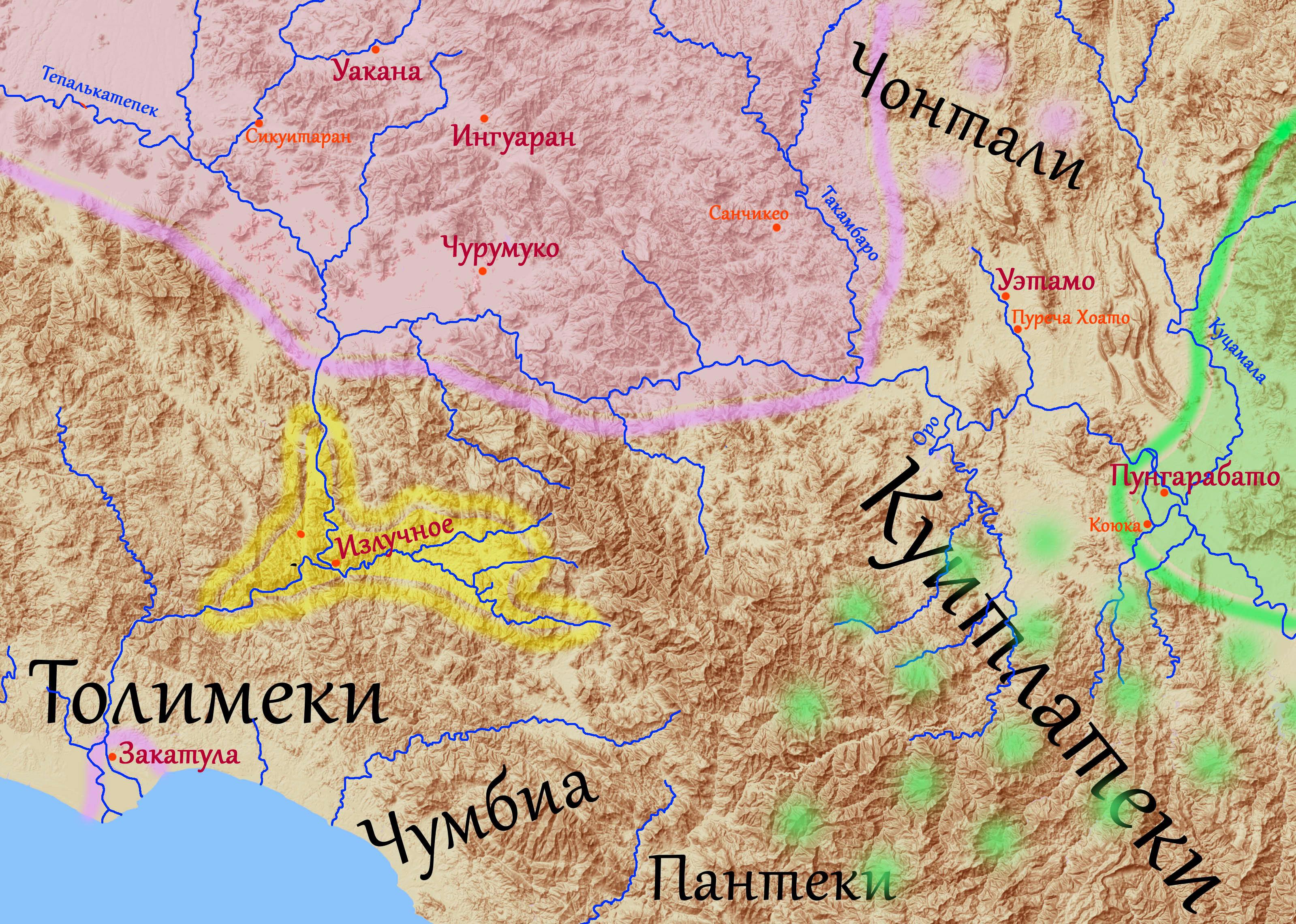 Фиолетовым – владения пурепеча