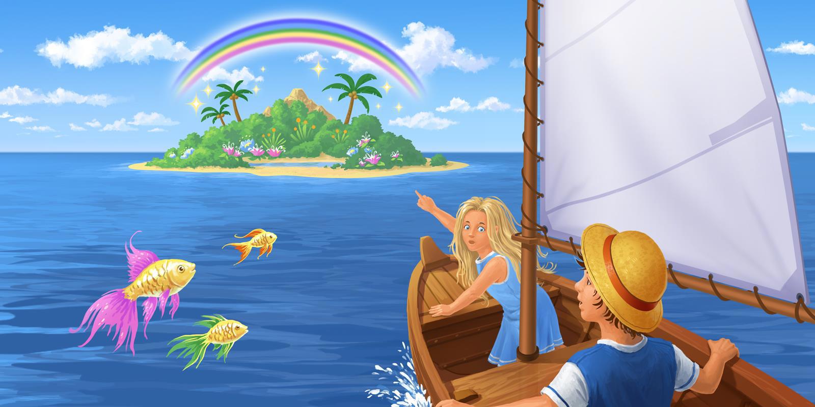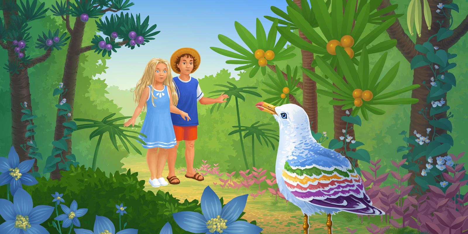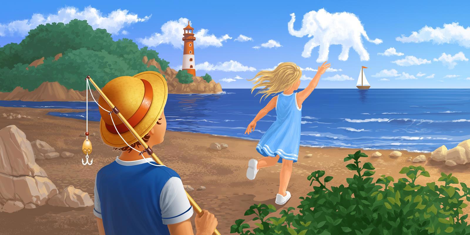 Дети, облако в виде слона и волшебный остров, на котором сбываются все мечты. Рисовала в 2018г.