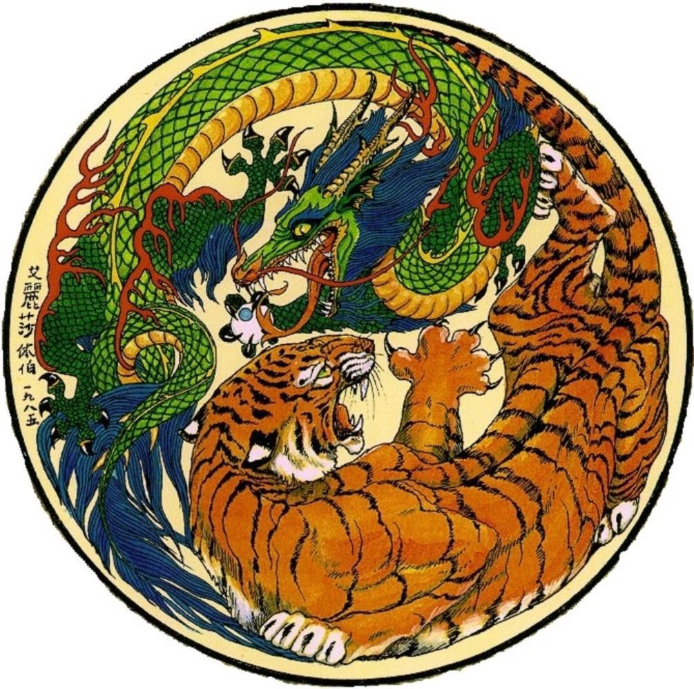 Иногда он также изображается в виде борющихся Тигра и Дракона.
