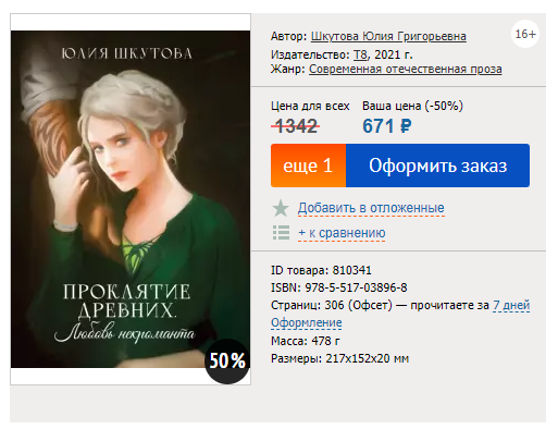 Автор: Юлия ШкутоваНа Лабиринте сейчас действует 50% скидка на роман "Проклятие древних. Любовь некроманта"! Что-то мне подсказывает, что после этого цены взлетят как безумные. Поэтому те, кто ещё не купил, поторопитесь!