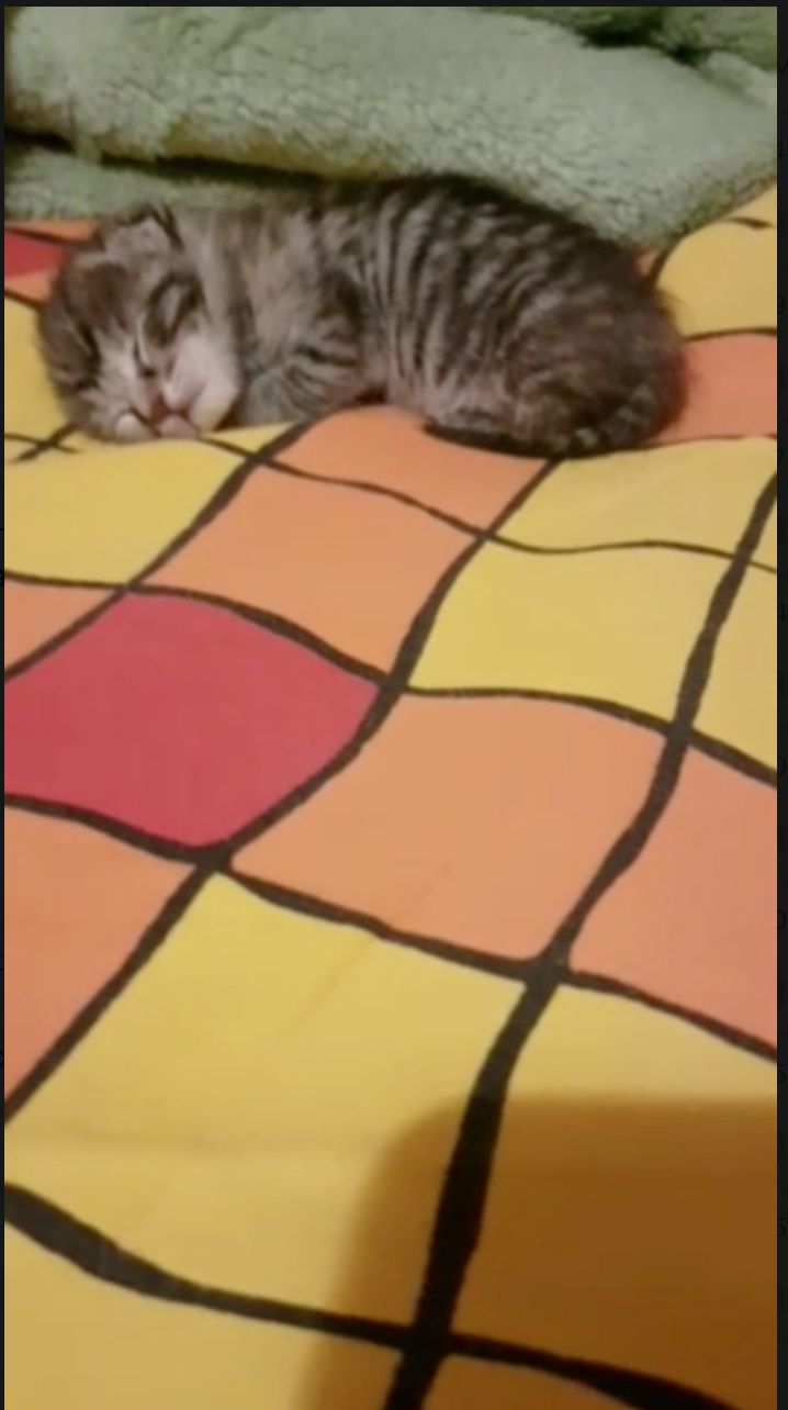Один из котят по водосточной трубе свалился вниз и застрял в стене между панелями из гипрока. Орал-пищал. Надюша уговорила мужиков, они вскрыли стену, котенка достали. Дня два ему тогда было (22 февраля).