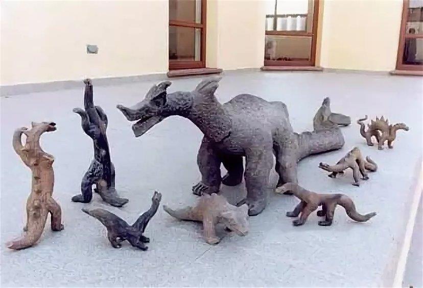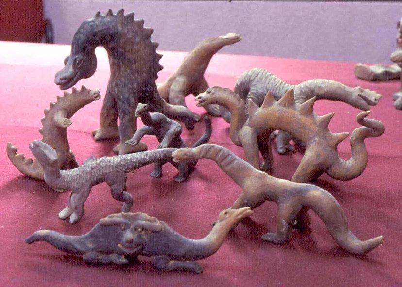 Эти фигурки, изображающие динозавров и прочих древних ящеров, вымерших, как утверждает официальная хронология, 65 миллионов лет назад.