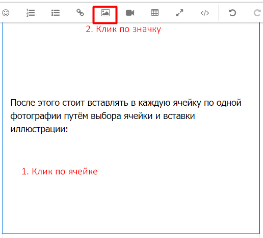 Для большего удобства чтения и просмотра иллюстраций стоит применять функцию таблиц. При этом число столбцов не стоит делать больше 3-4, чтобы не мельчить. | После этого стоит вставлять в каждую ячейку по одной фотографии путём выбора ячейки и вставки иллюстрации: В последующем окне следует выбрать нужную иллюстрацию |