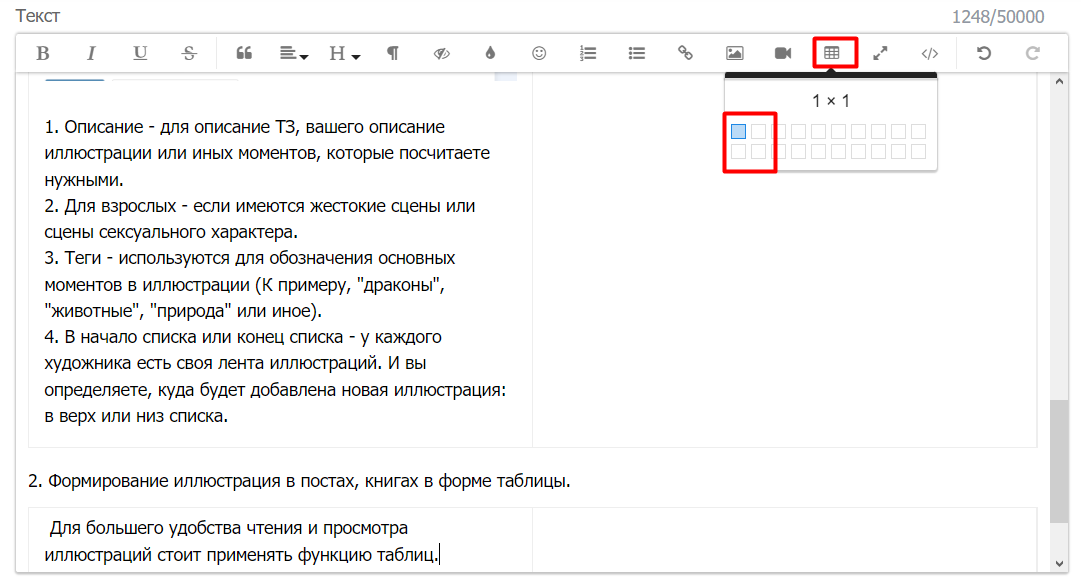Формирование иллюстрация в постах, книгах в форме таблицы.