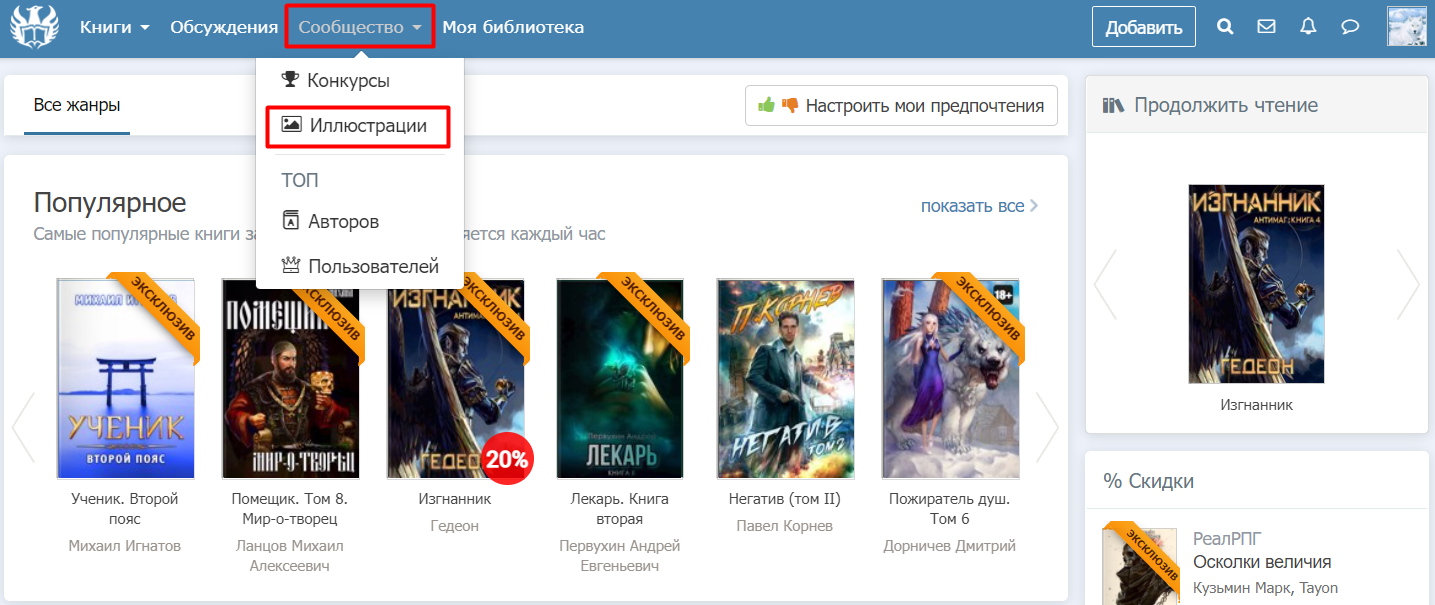 Вы можете перейти в иллюстрации с любой страницы сайты, наведя курсор, и выбрав нужный раздел
