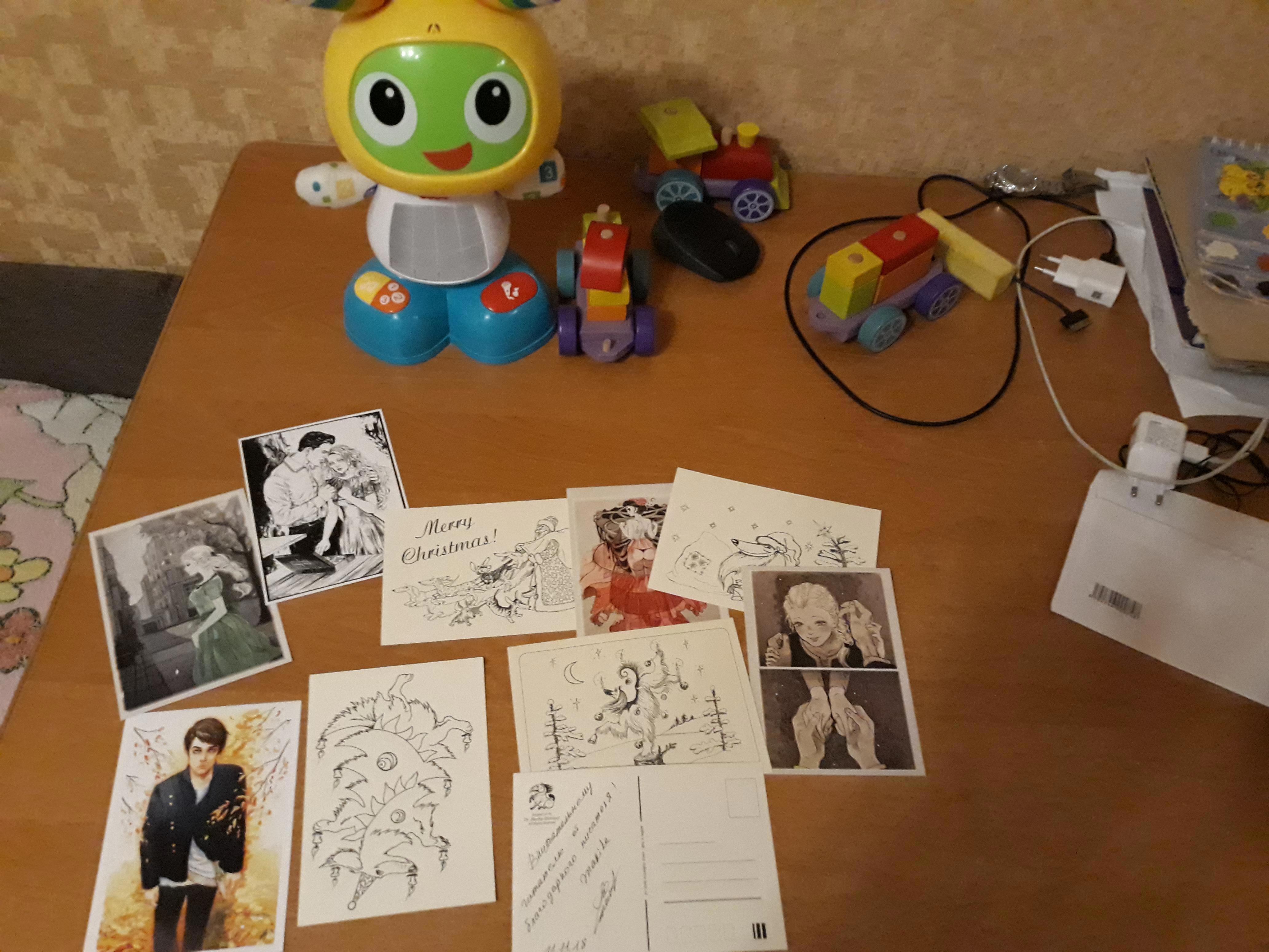 Так вот - сегодня я получил ПИСЬМО от Марики!!! С открытками собственного производства (см.фото ниже) Эт круто - это сделало мой вечер пятницы. С-П-А-С-И-Б-О ! Это память на долгое время и я буду хвастаться своим близким, что мне выслал письмо автор книг, которые я читал