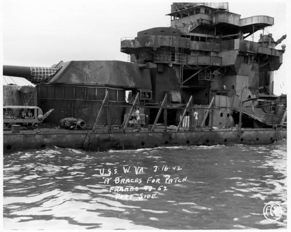 Корабль затонул на мелководье, но позже был снят и в течение всего 1943 года и до середины (до июля) 1944 года был полностью перестроен. Интересный факт состоит в том, что «Западная Вирджиния» получила самые серьезные повреждения среди всех линкоров, которые в конечном итоге отремонтировали и ввели в строй.