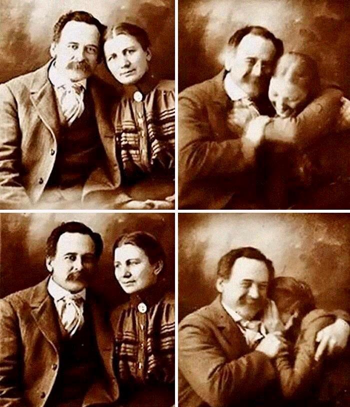 1890 год. Супруги викторианской эпохи пытаются не смеяться, позируя для портрета.