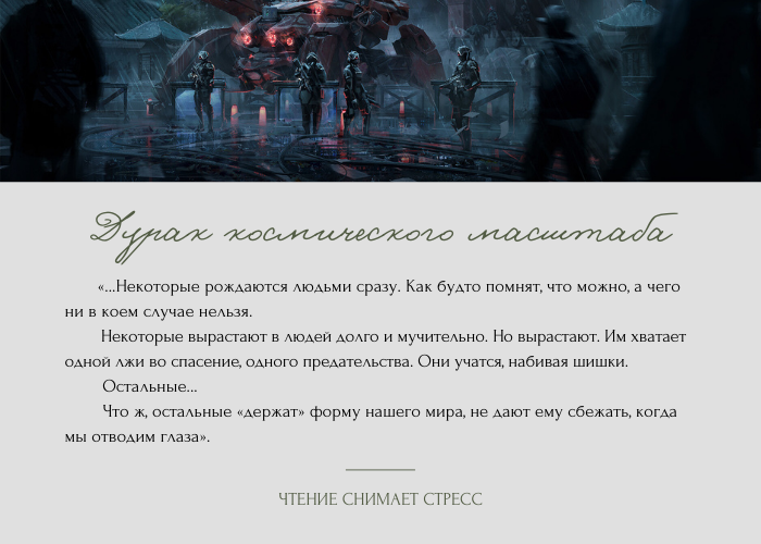 Автор: Кристиан БэдМы испытываем стресс, потому что рушится картина нашего мира. Но мир стоит и будет стоять. И картина мира в нашей голове тоже постепенно изменится. Всё пройдёт. А пока - приходите читать)).