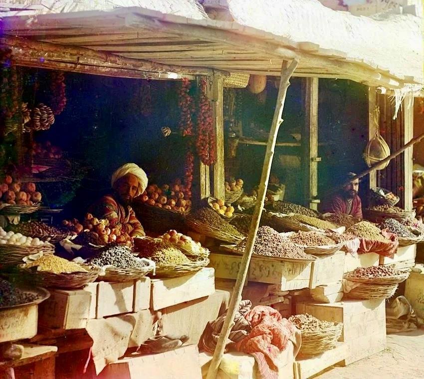 1911 год, Самарканд. Фруктовая лавка. Фотография С.М.Прокудина-Горского.
