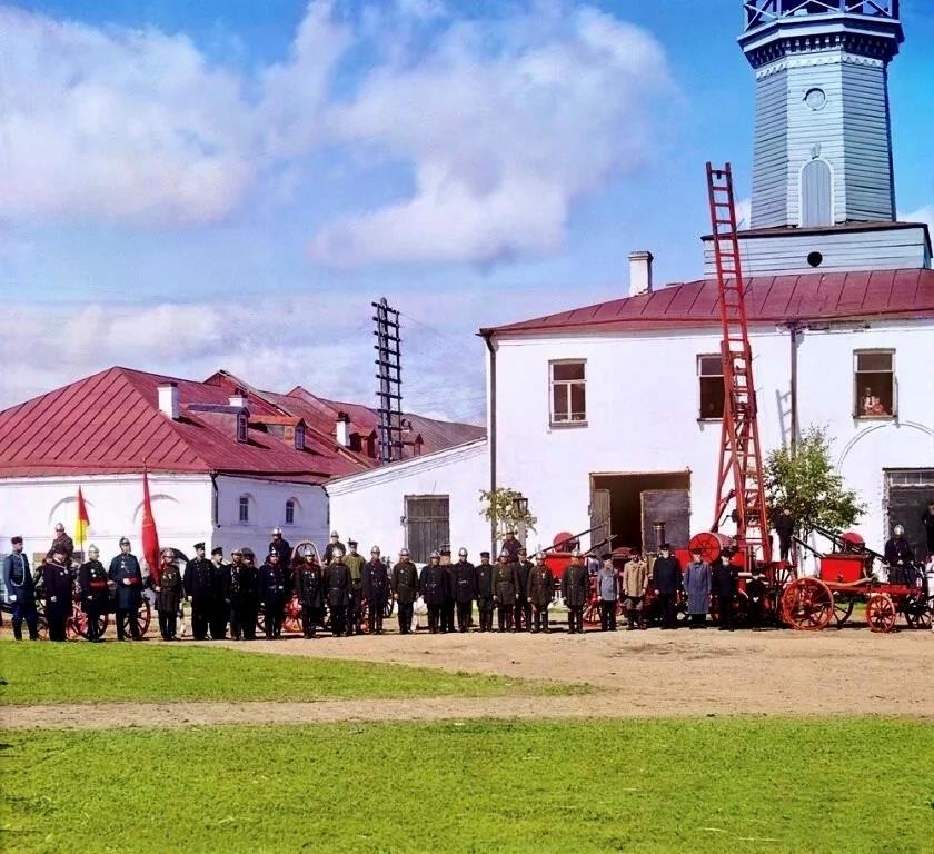 1909 год, Вологодская область, г.Вытегра. Пожарная команда в г. Вытегре. Фотогрфия С.М.Прокудина-Горского.