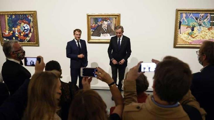 Президент Франции Эммануэль Макрон (слева) на открытии выставки «Коллекция Морозовых». Источник: Le Figaro