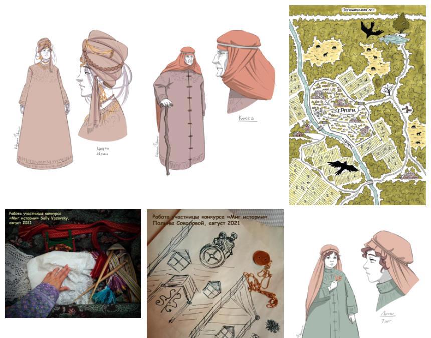 3. Фото: работы участниц конкурса "Миг истории", задача которого состояла в том, чтобы из подручных материалов сотворить иллюстрацию к книге. Настоящая эстетика! Кто уже успел прочитать историю, сразу поймет к каким отрывкам эти работы :)